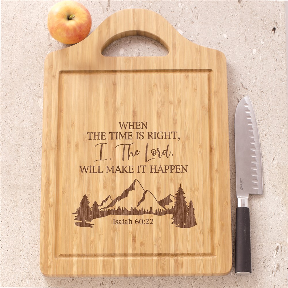 We will engrave your favorite bible verse on this Engraved Bible Verses Mountain Scene Cutting Board.