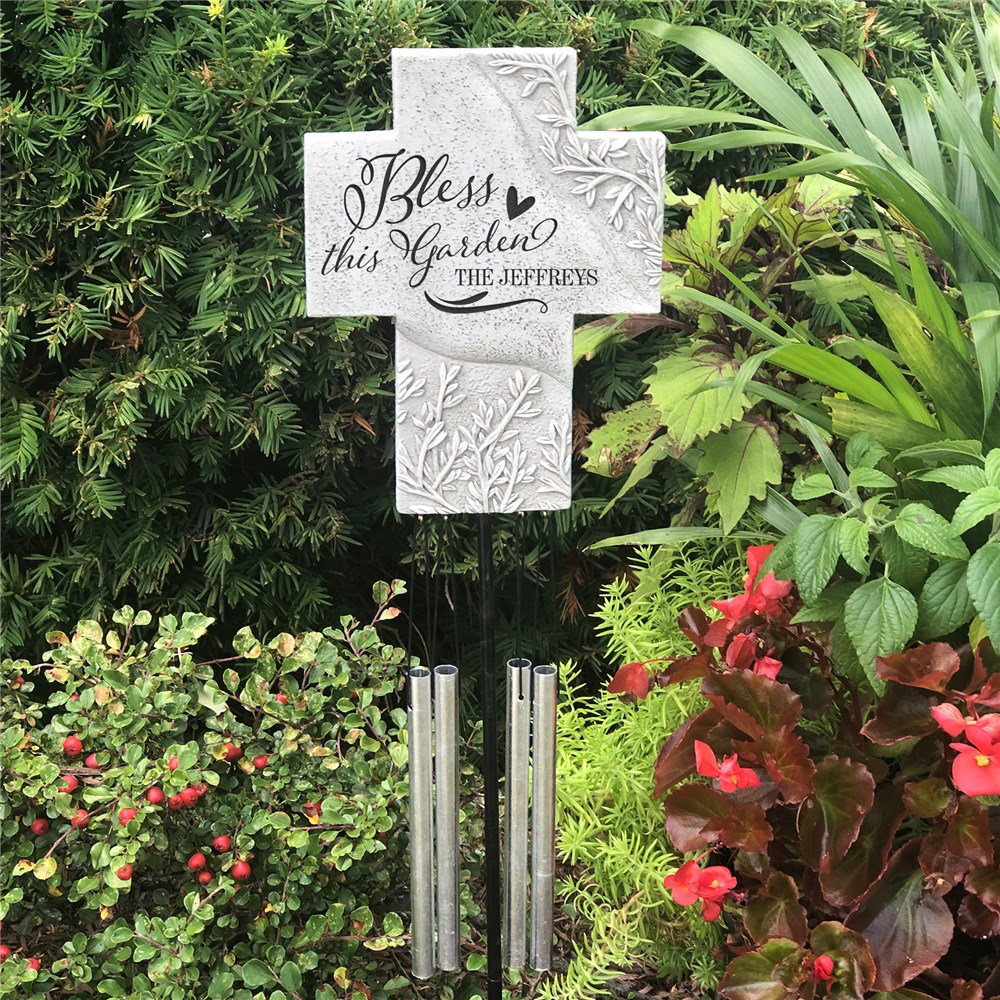 Engraved Bless This Garden Cross Stake ChimeEngraved Bless This Garden Cross Stake Chime