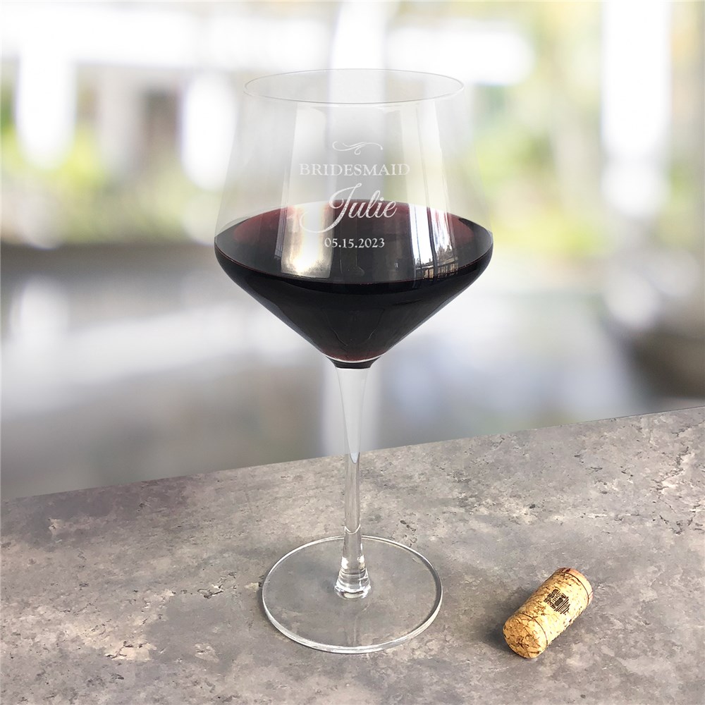 Give every member of your bridal party a token of appreciation with our Engraved Bridal Party Red Wine Estate Glass.