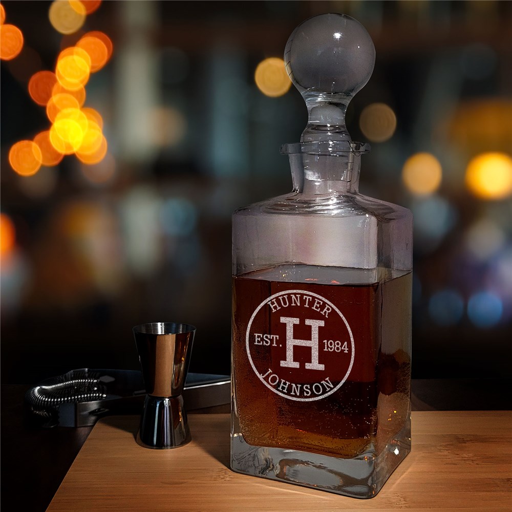 Our Engraved Circle Initial Luxe Decanter makes is an impressive gift for anyone who loves entertaining guests at their home bar.