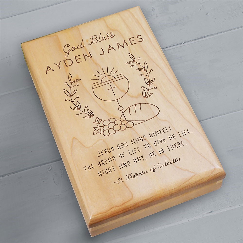 Commemorate their first communion with this Engraved Communion Chalice Valet Box.