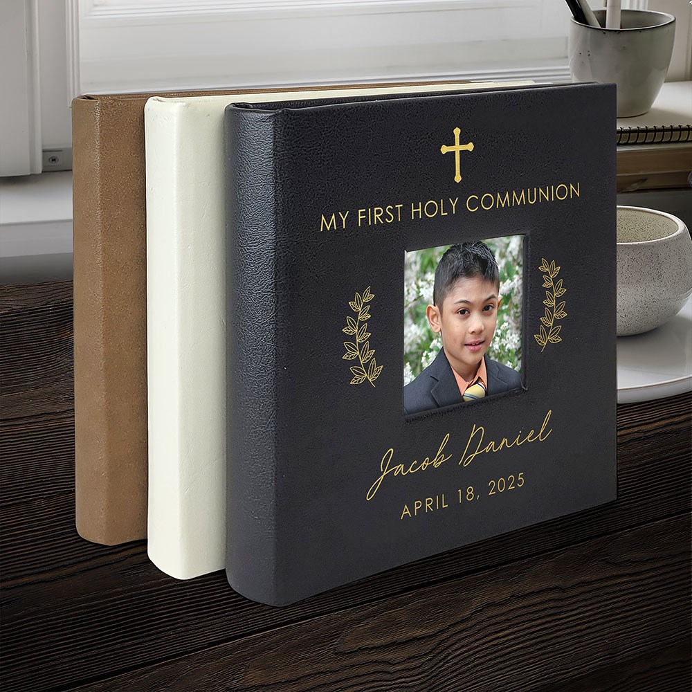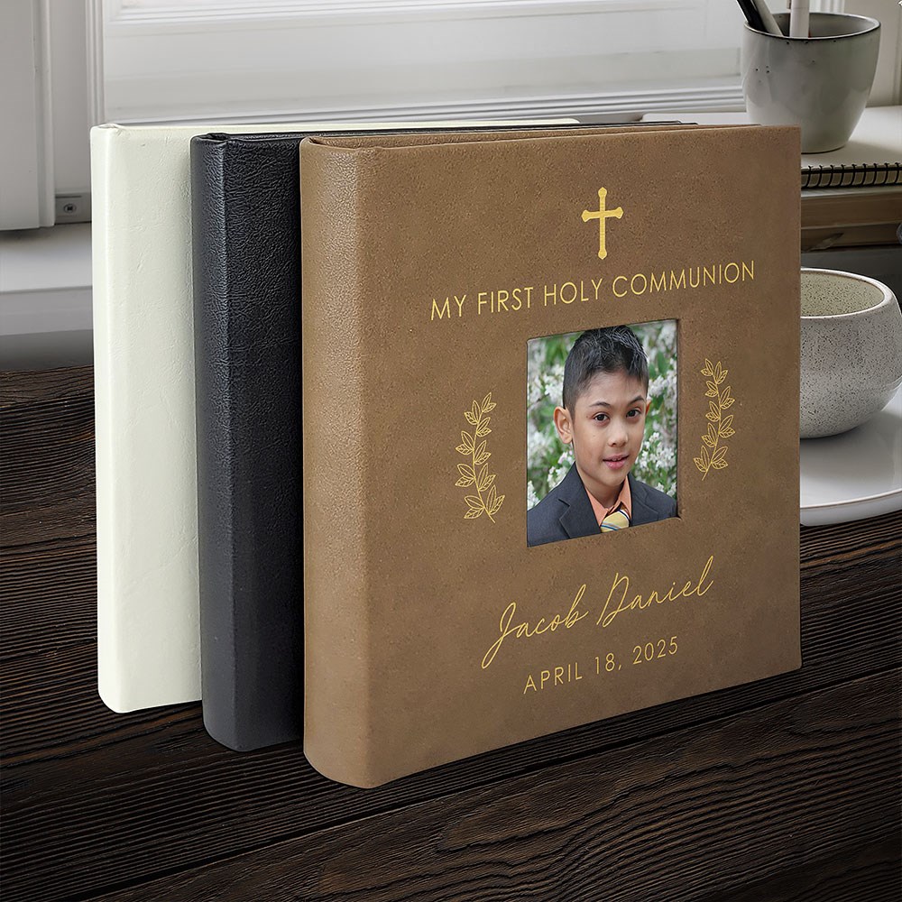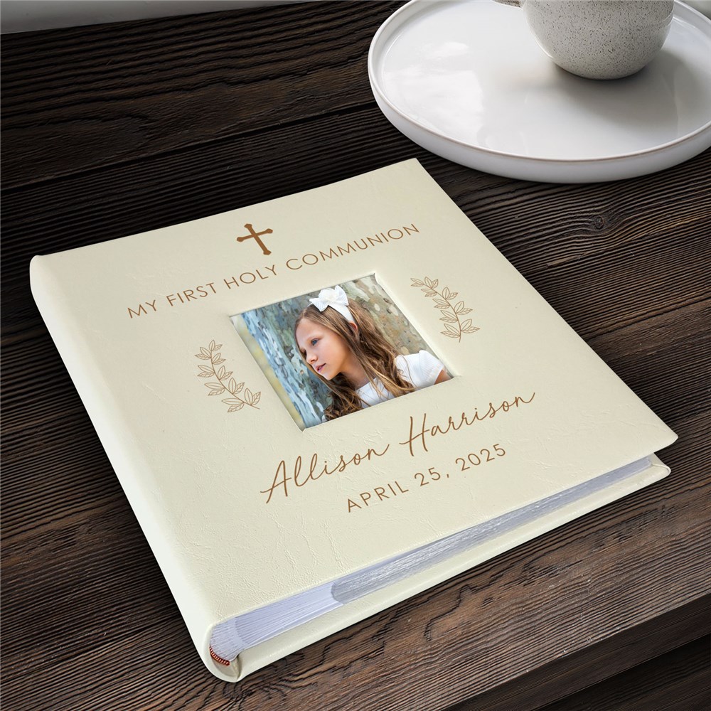 This Engraved Communion Wreath Leatherette Photo Album is perfect for preserving treasured photos and memories of their faith journey.