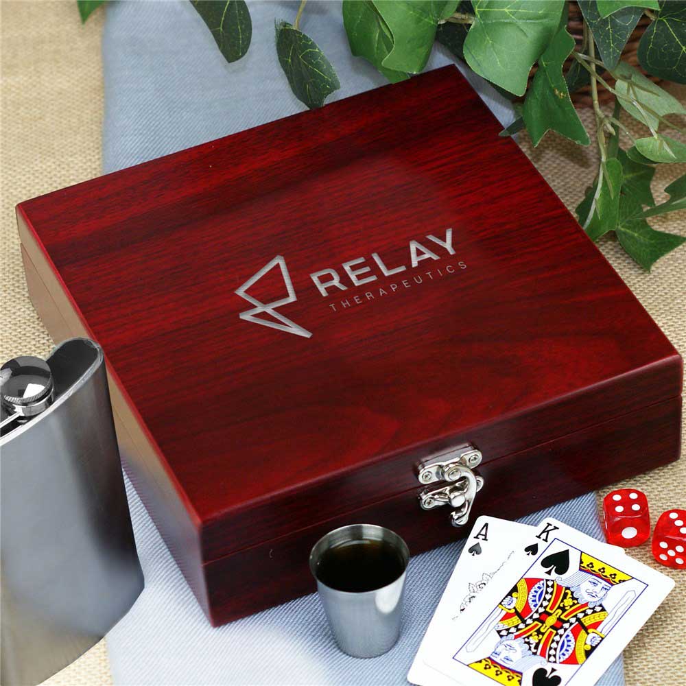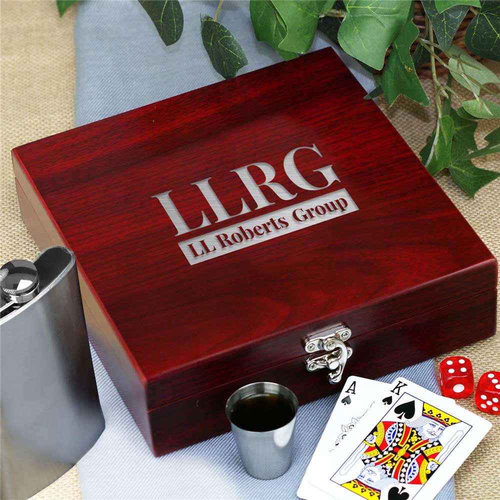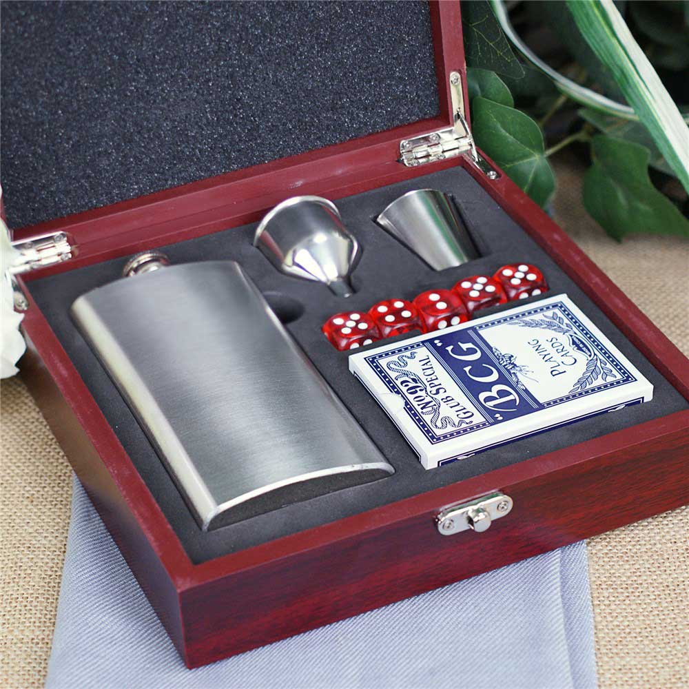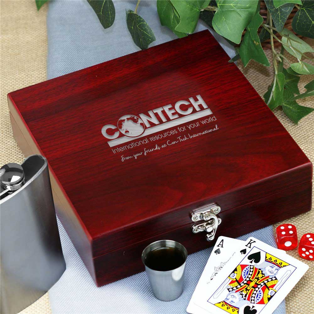 Our Engraved Corporate Poker Flask Set makes a great gift for your work associates.