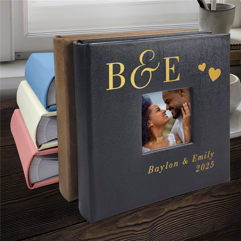Celebrate your unique love story with our Engraved Couples Initials Leatherette Photo Album.
