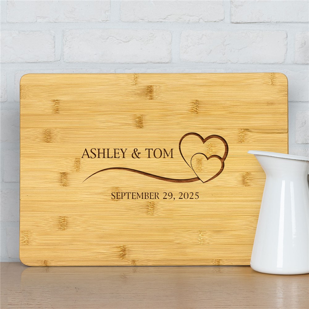 Engraved Couple's Names With Hearts Bamboo Cutting Board