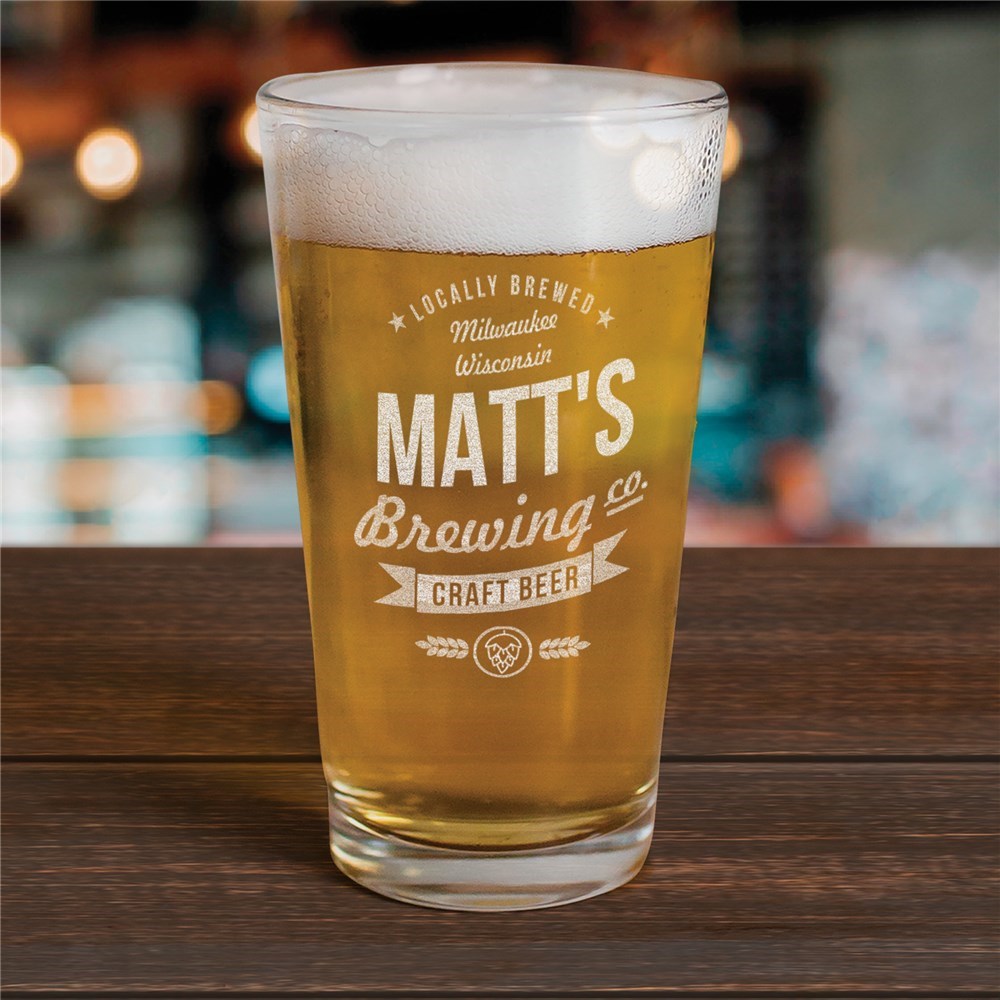 No craft beer lover's bar would be complete without his own personalized craft brewing company glass. Engraved with all their craft brew specifics Any city , Any state , and Any name , this unique beer glass is sure to be a hit.  Give this great gift as a single glass or set for holidays, Father's Day, housewarming, or any special occasion.
