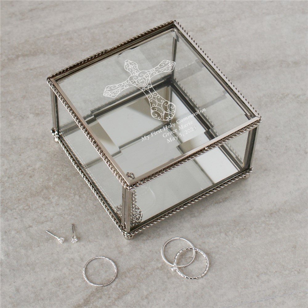Engraved First Holy Communion Glass Jewelry Box | Personalized Keepsake BoxEngraved First Holy Communion Glass Jewelry Box | Personalized Keepsake Box