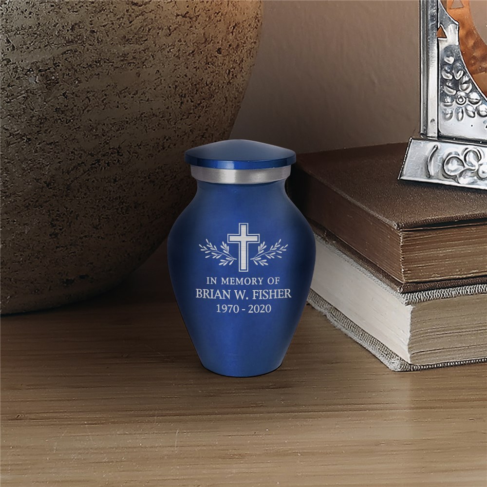 This Engraved Cross With Leaves Small Keepsake Urn is a meaningful way to remember your loved one.