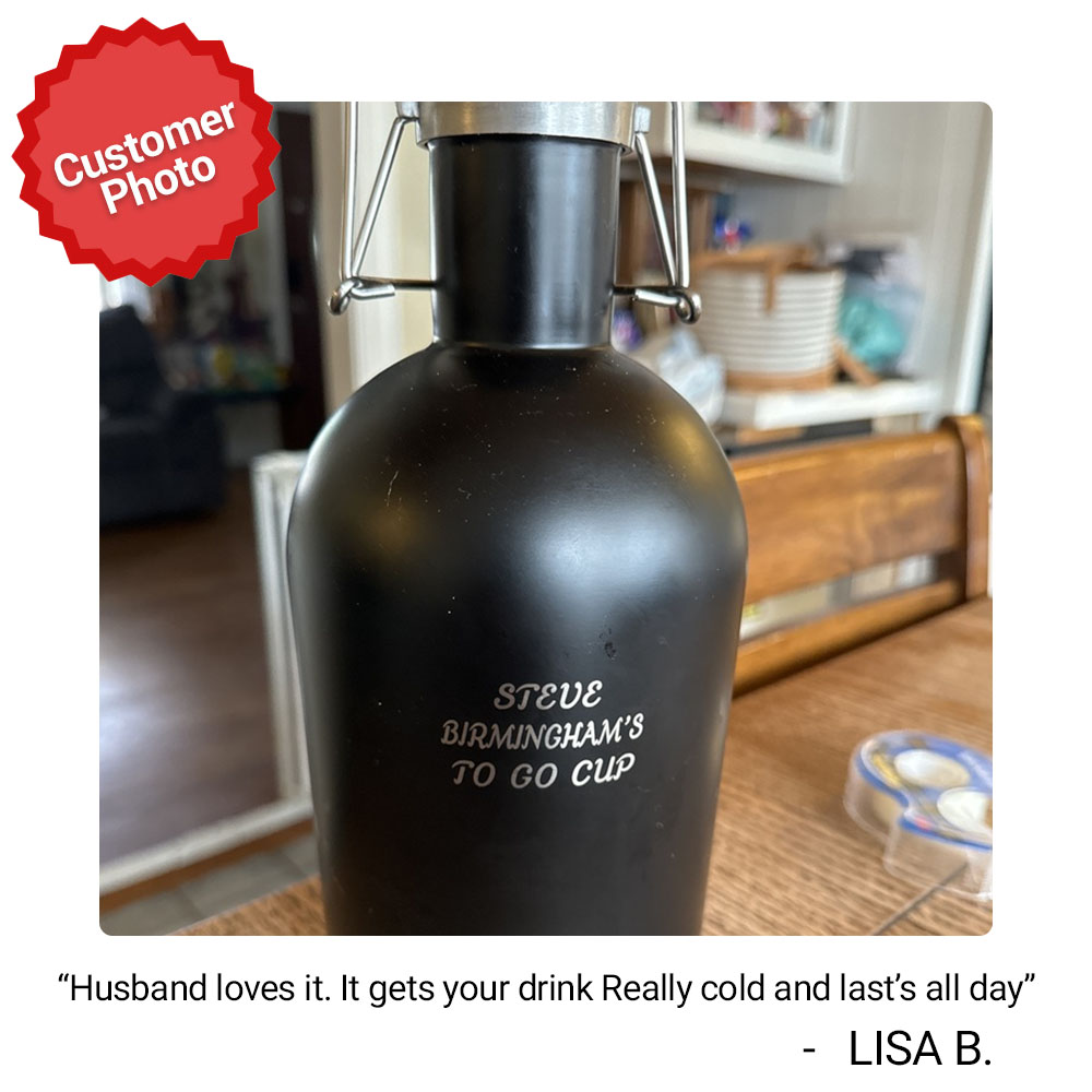 Our Engraved Custom Message Stainless Steel Growler is a useful gift for just about anyone!