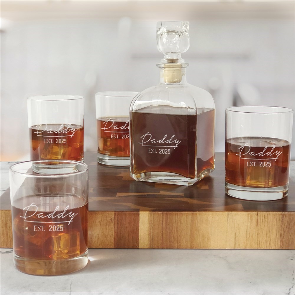 .Circle Initial Whiskey Rocks Glass With Bottom Engraving