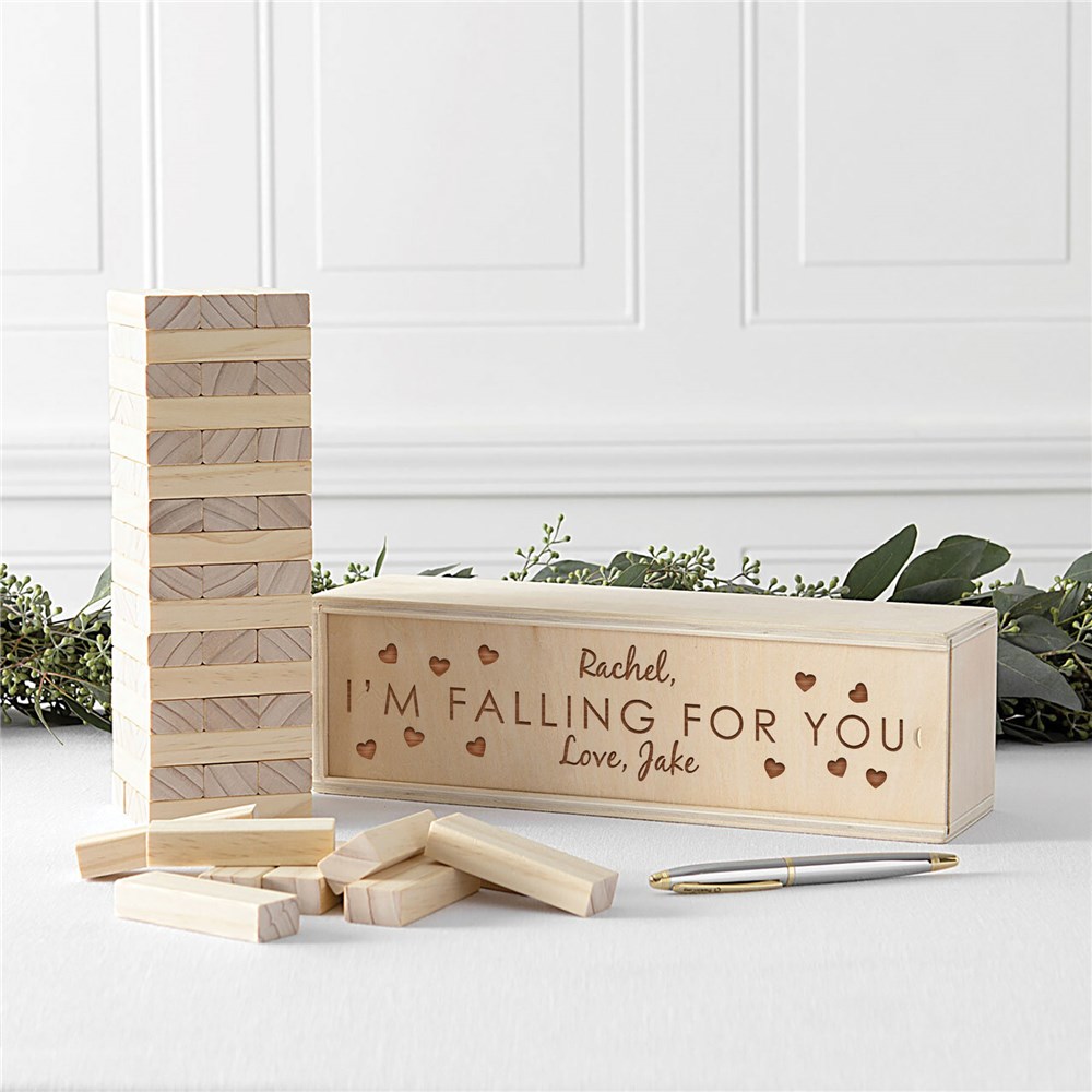 Spend a romantic night in together with, dinner, movies and games including our Engraved Falling for You Blocks!