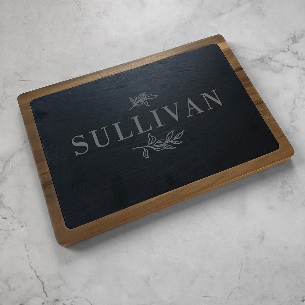 Our Engraved Family Name Slate Cutting Board is a stylish piece to add to your kitchen!