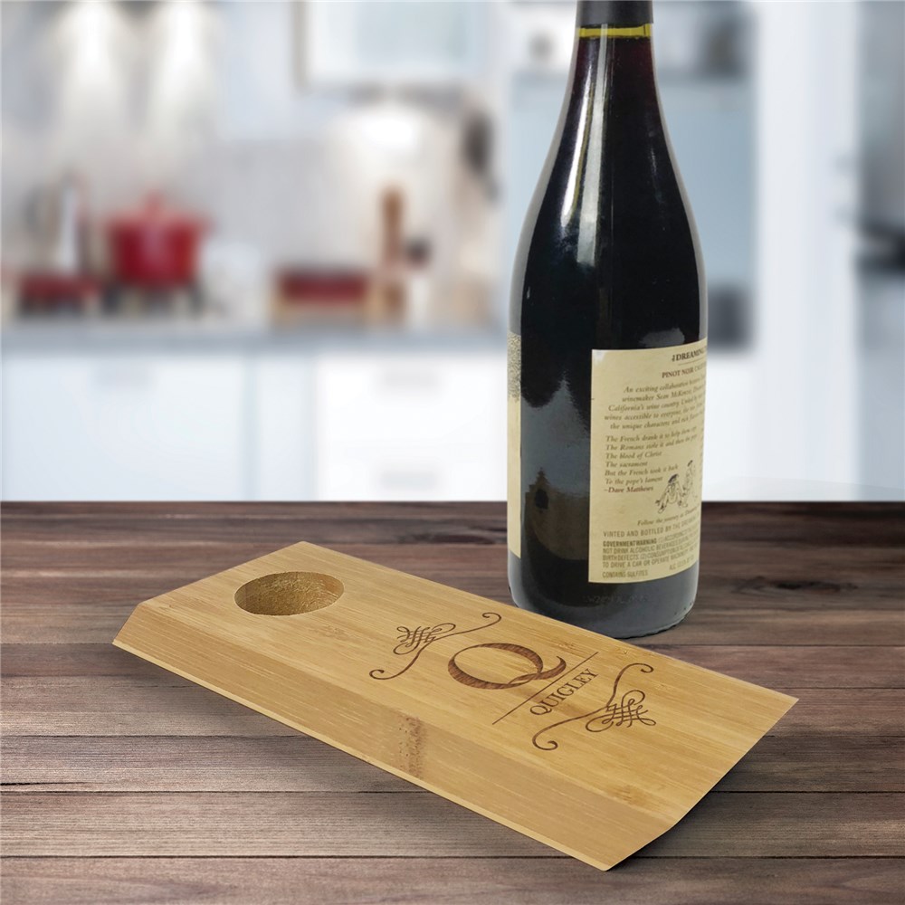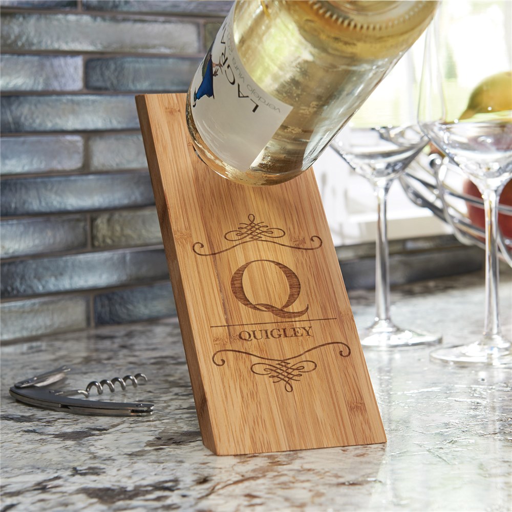 Put your favorite wine on display with our bamboo Engraved Family Name Wine Bottle Balancer.