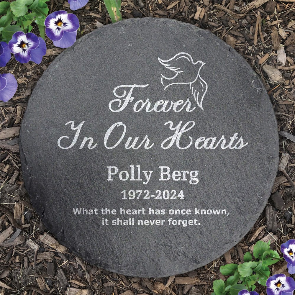Pay tribute to your loved one with our Engraved Forever In Our Hearts Round Slate Stone.