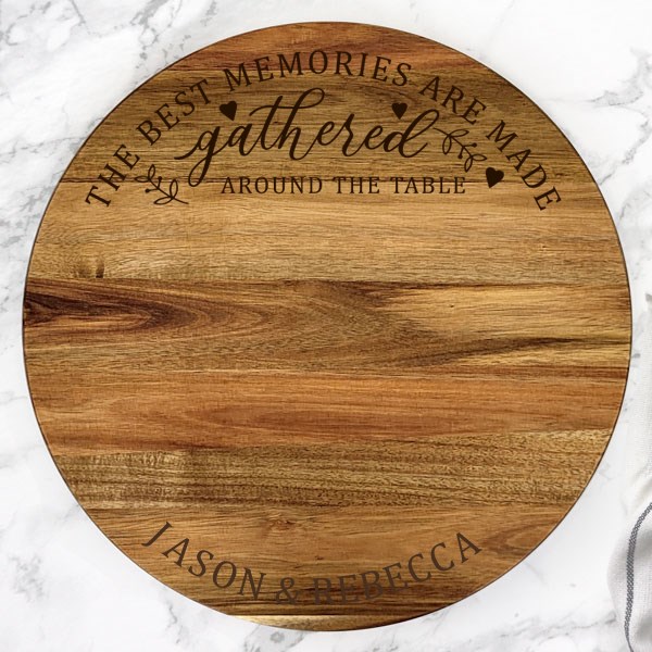 Our Engraved Gathered Around the Table Lazy Susan is the ideal centerpiece for your dining room table!
