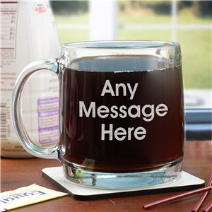 Engraved Glass Mugs make great gift ideas for anyone at any occasion. Any Customized Glass Mug you select from our collection is perfect for coffee, tea, juice or just your favorite drink. Give a Custom Printed Glass Mug to your Grandmother, Grandfather, Mother, Father, Husband, Wife, Brother or Sister that is especially made for them.