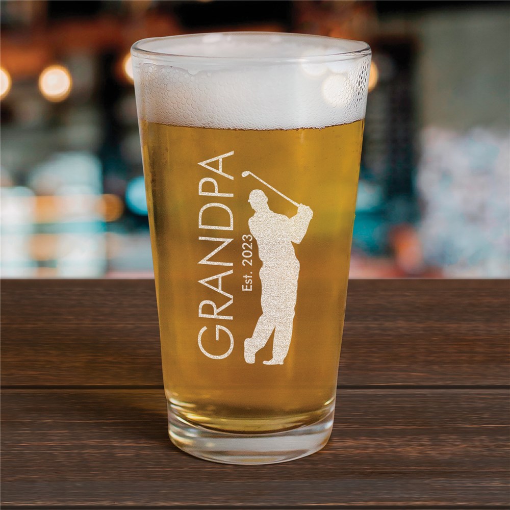 This skillfully Engraved Golfer Beer Glass is sure to any Golf lovers favorite gift. Intricately etched with any name and year . Golfing Gifts make a great gift for Father's Day or his Birthday!