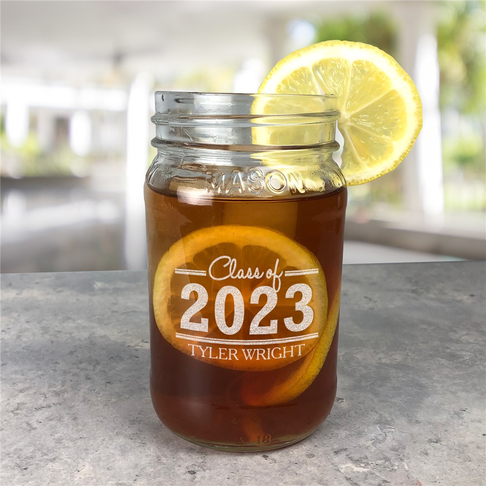 Congratulate any graduate with our Engraved Graduation Small Mason Jar to celebrate this achievement with their favorite drink!
