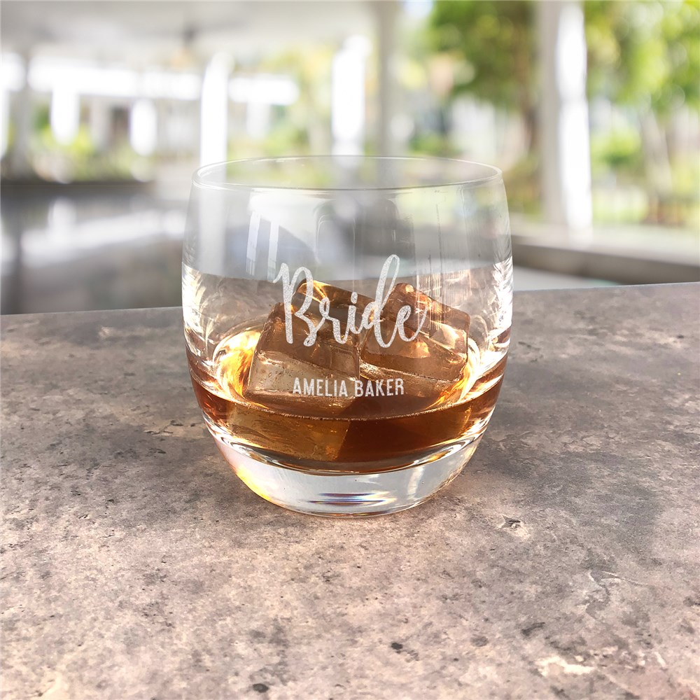 Our Engraved Groom & Bride Wedding Whiskey Glass will make a lovely addition to the newlyweds' glassware.