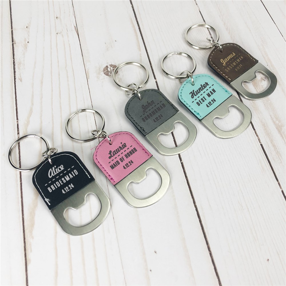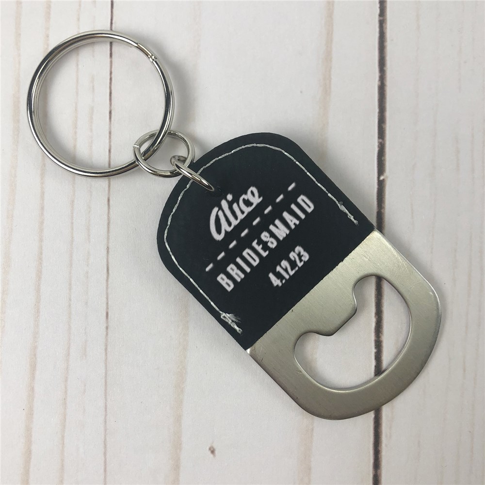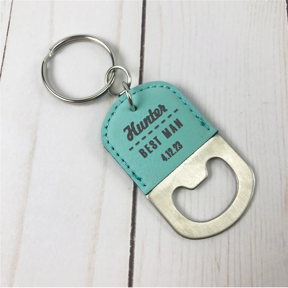 Engraved Groomsmen Leatherette Keychain Bottle Opener
