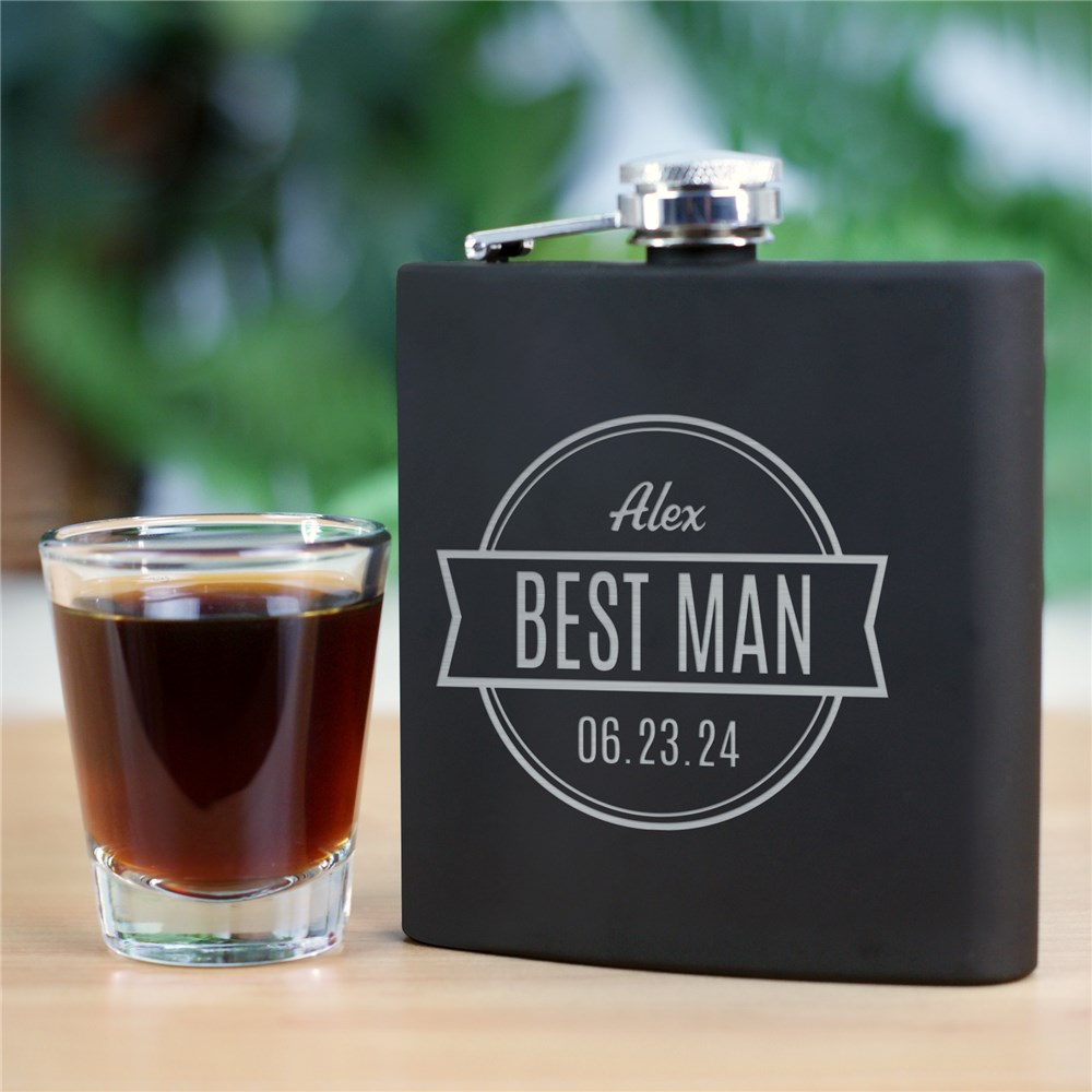 Our Engraved Groomsmen Steel Flask is the perfect gift for your husband-to-be side of the wedding party!