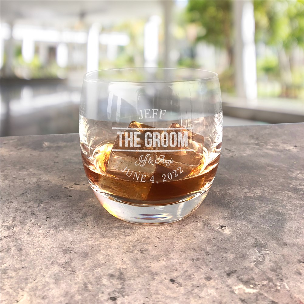 Personalize this whiskey glass with any name, titlewedding couple's names and wedding date to remember this special time.