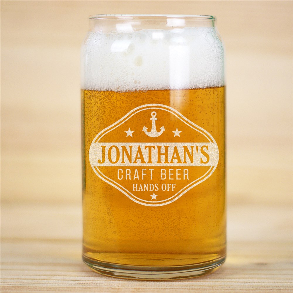 This Valentine's Day give the perfect gift to your beer connoisseur with our Engraved Hands Off With Anchor Beer Can Glass.