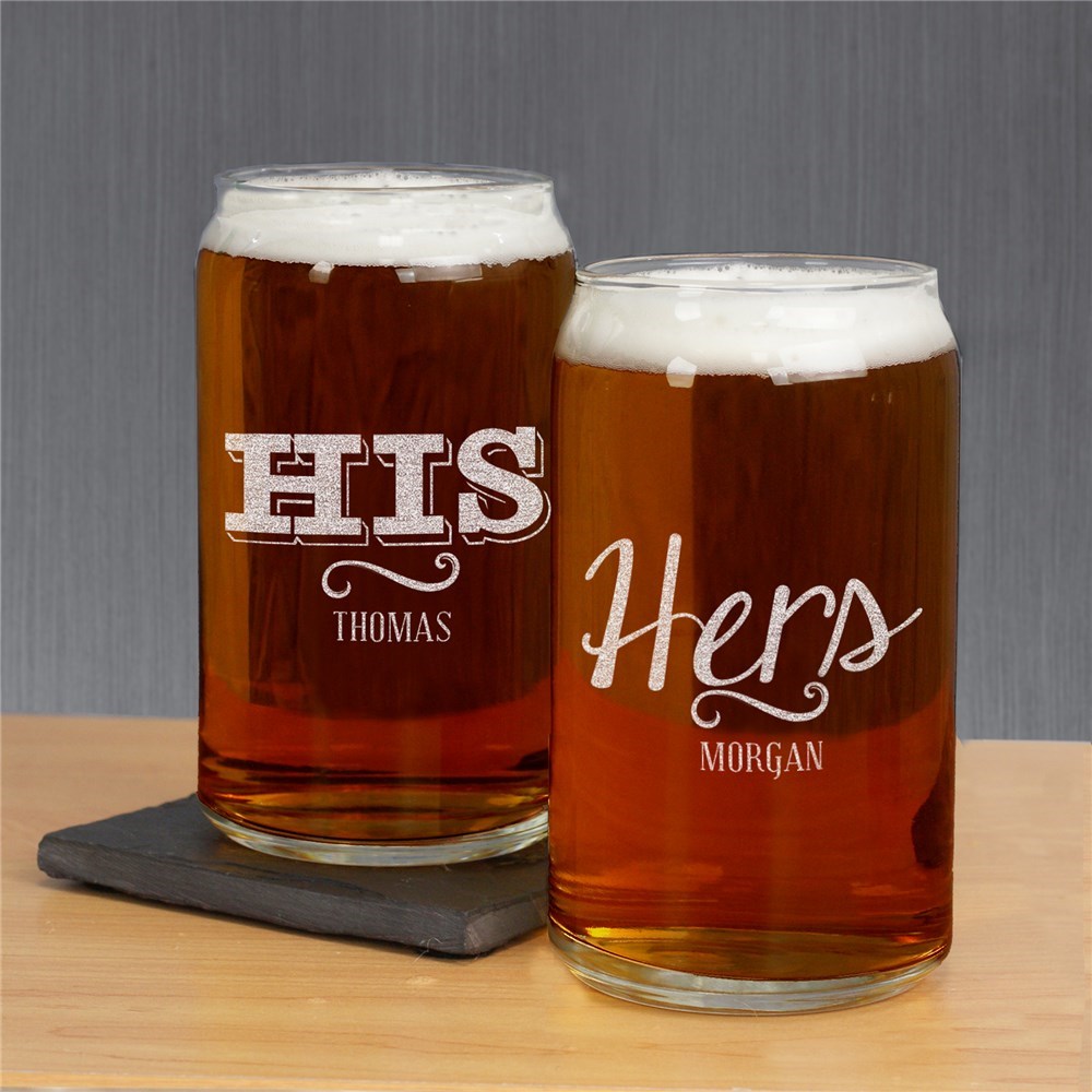 Engraved His Or Hers Beer Can Glass Set