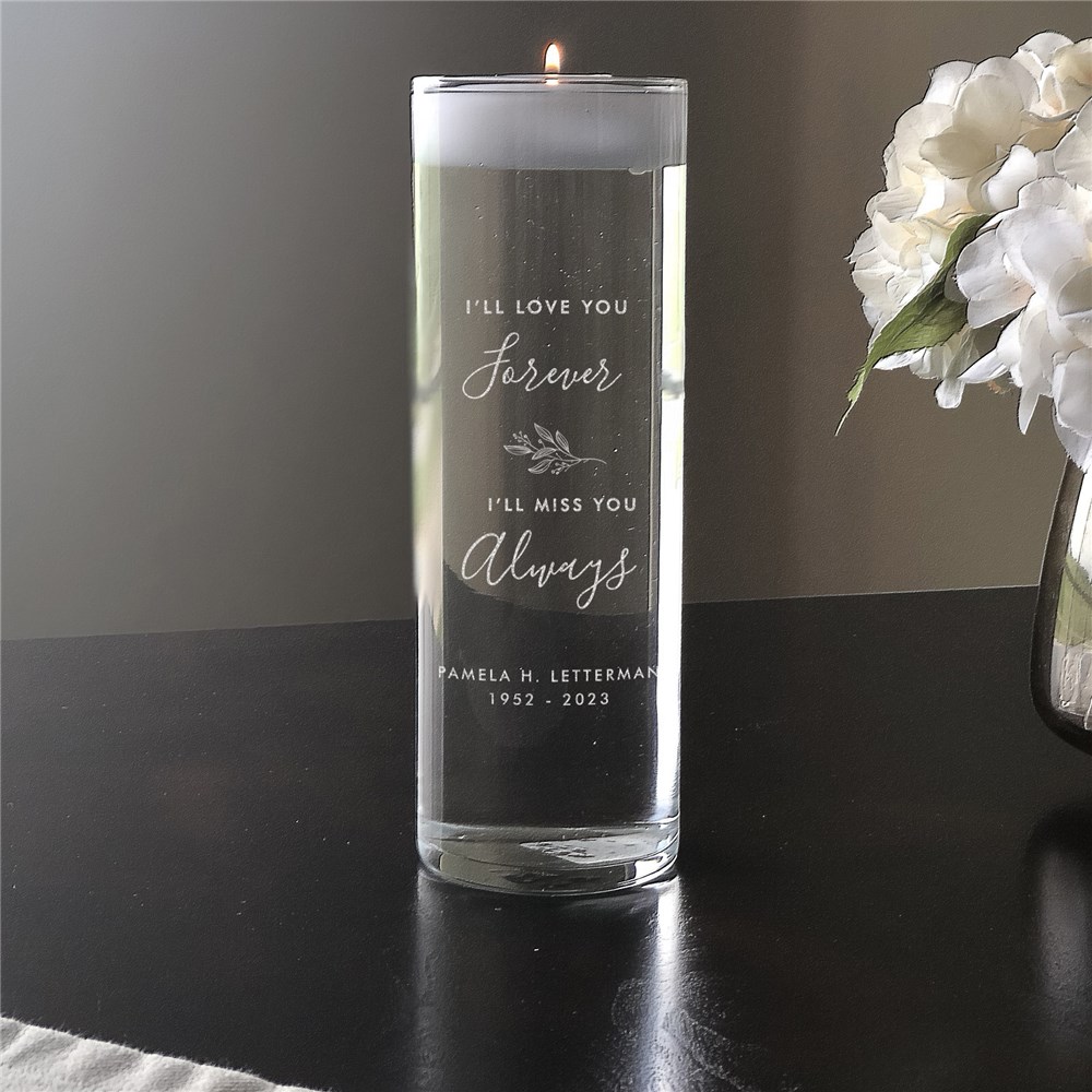 Our Engraved I'll Love You Forever I'll Miss You Always Floating Candle Vase is a beautiful way to remember someone close to your heart.