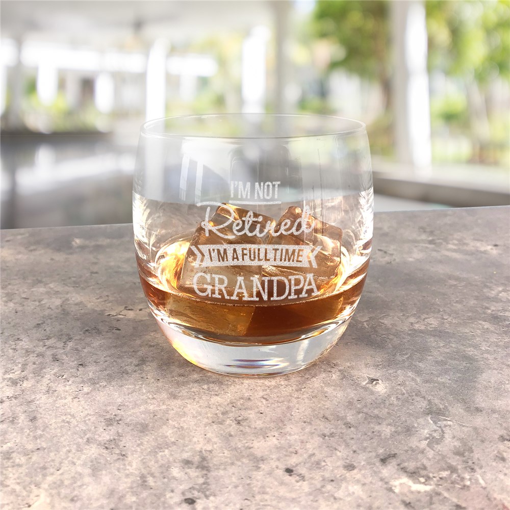 Any grandparent who has recently retired will be happy to celebrate with our Engraved I'm Not Retired Whiskey Glass.