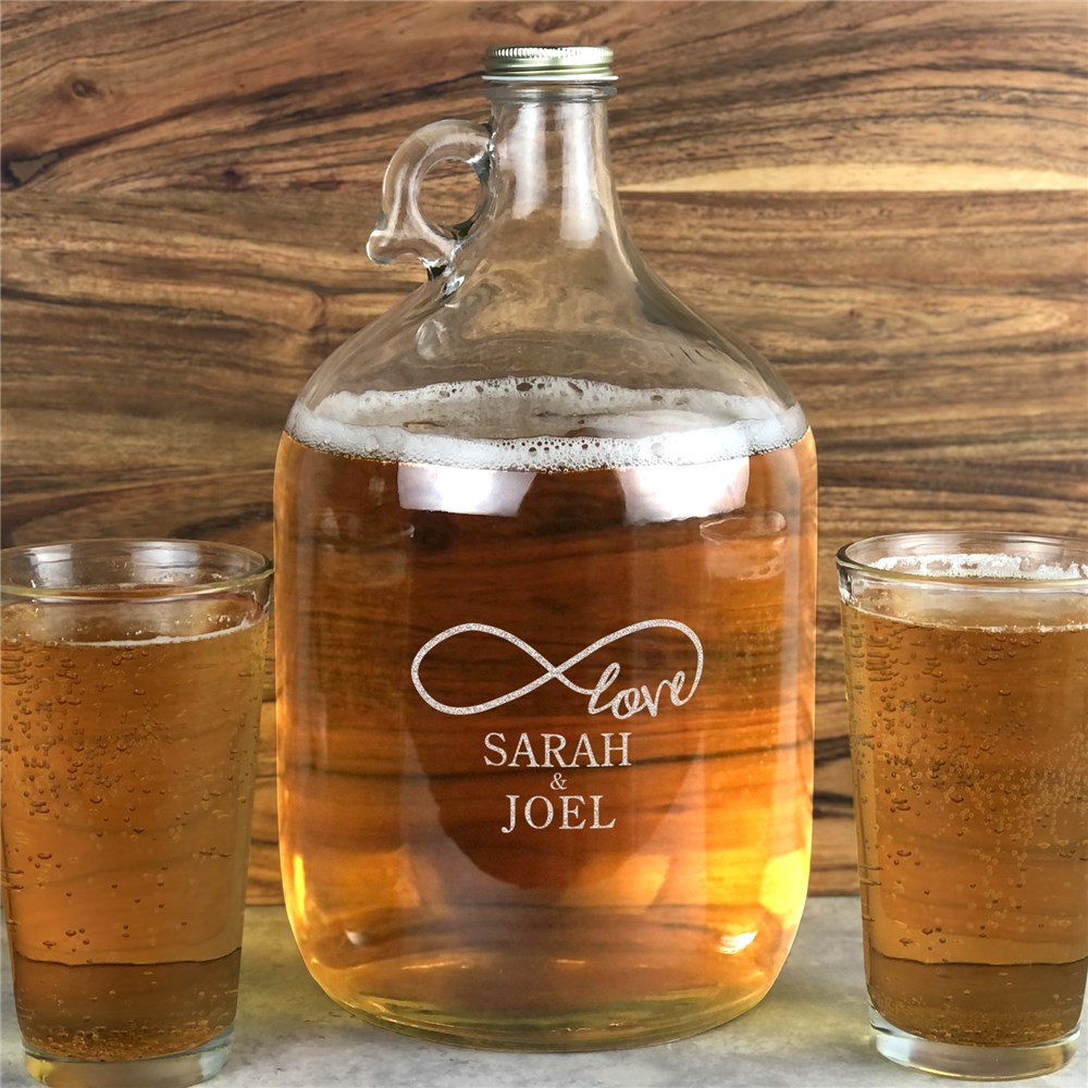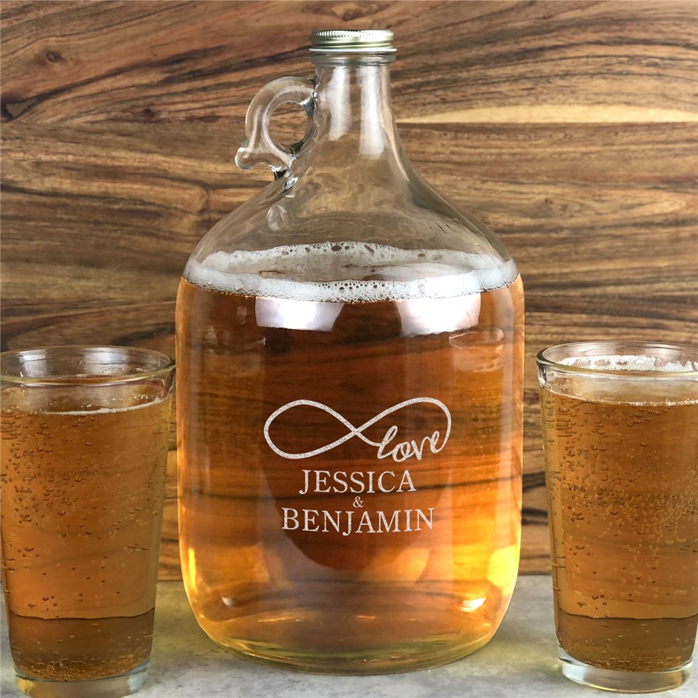 Complete your wedding reception decor with our Engraved Infinity Love Glass Growler.