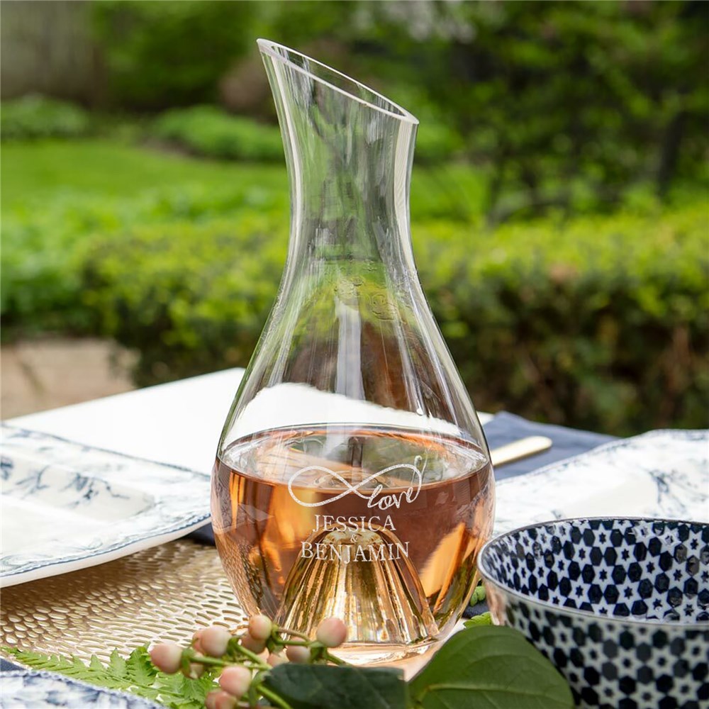 Our Engraved Infinity Love Wine Carafe is an elegant wedding day accessory to have at your reception.