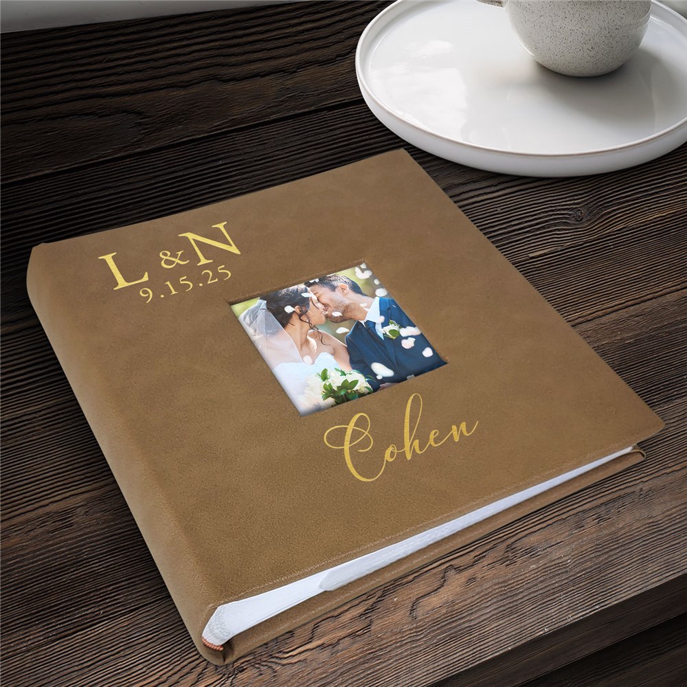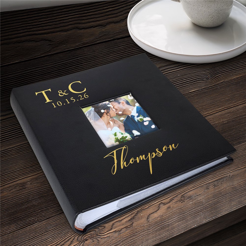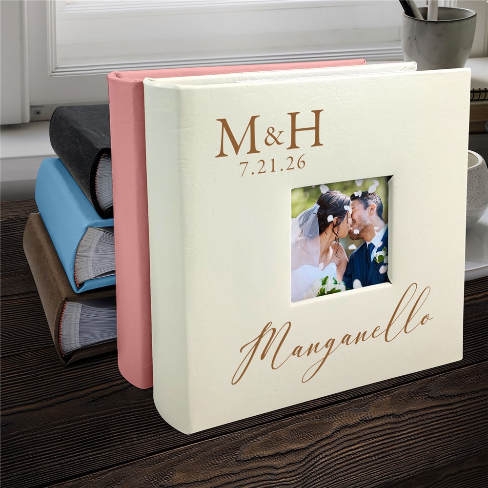 Create a beautiful wedding keepsake for any newlyweds with our Engraved Initials & Last Name Leatherette Photo Album.