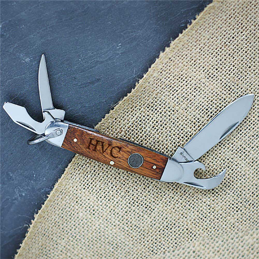 This Engraved Initials Dark Wood Pocket Knife makes a great gift for anyone who likes to hunt, carve, or camp!