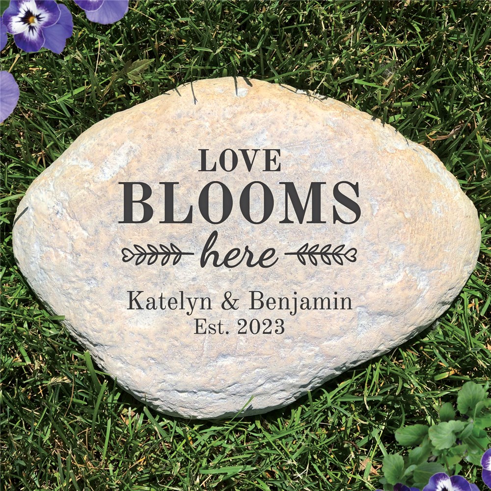 Newlyweds will love to display our Engraved Love Blooms Here Large Garden Stone in their lawn or garden.