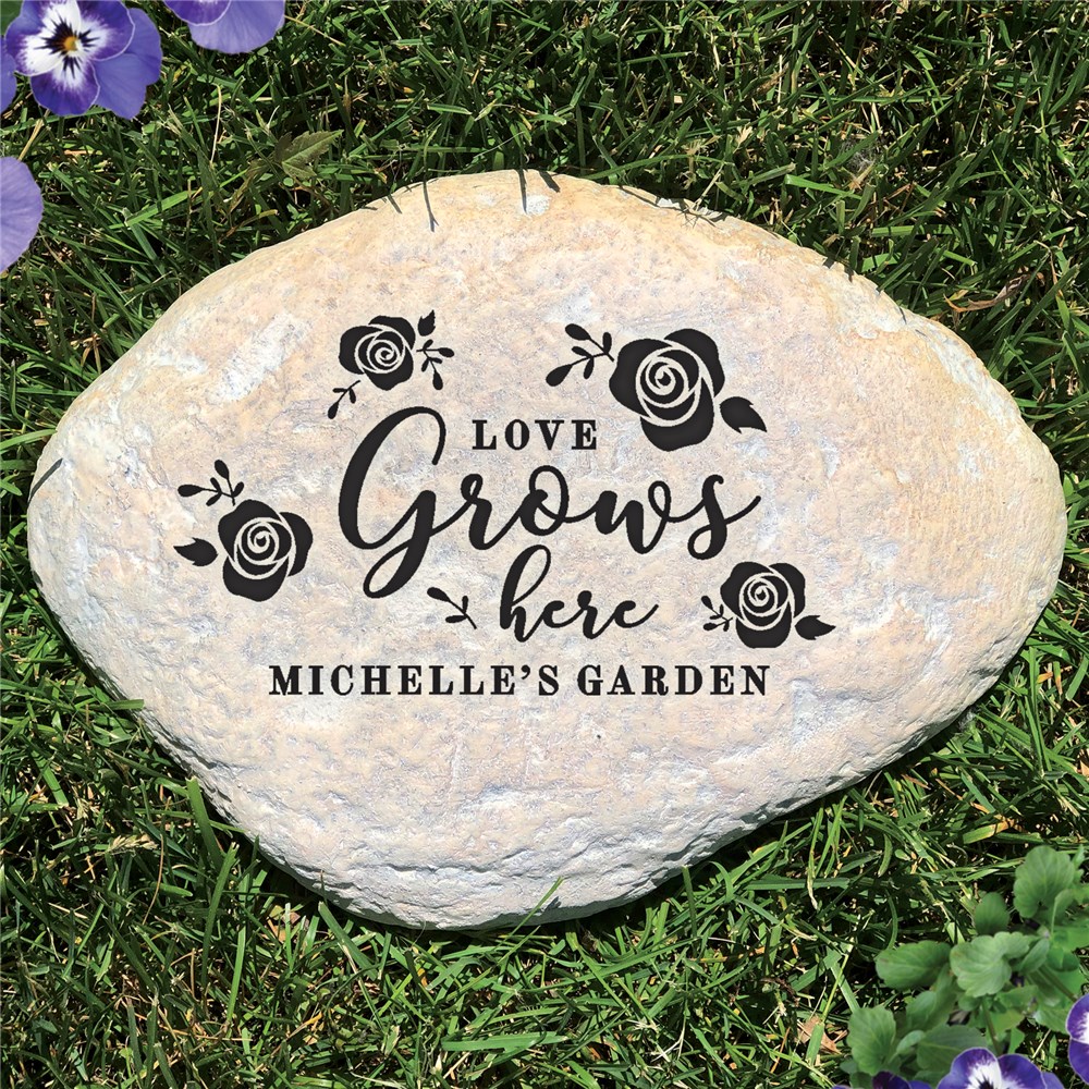 Show how deep your love grows with the addition of an Engraved Love Grows Here Family Garden Stone to your yard. We will custom create this personalized garden stone for spring with our floral design with any family name line to make a unique yard piece just for you this Spring. Our personalized garden stones are excellent personalized housewarming gifts for any family!