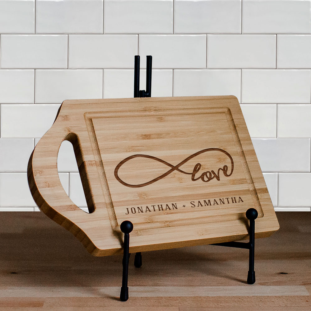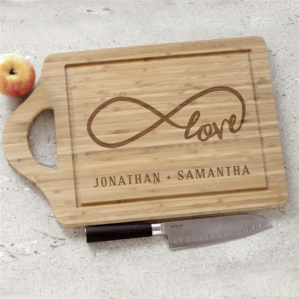Show your love for each other with this unique Engraved Love Infinity Cutting Board to add to your home.