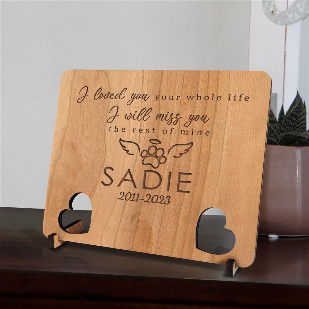 Personalize this display with any name and memorial date which will serve as a lovely memorial to the pet you loved. Add your pets collar for that special personal touch!