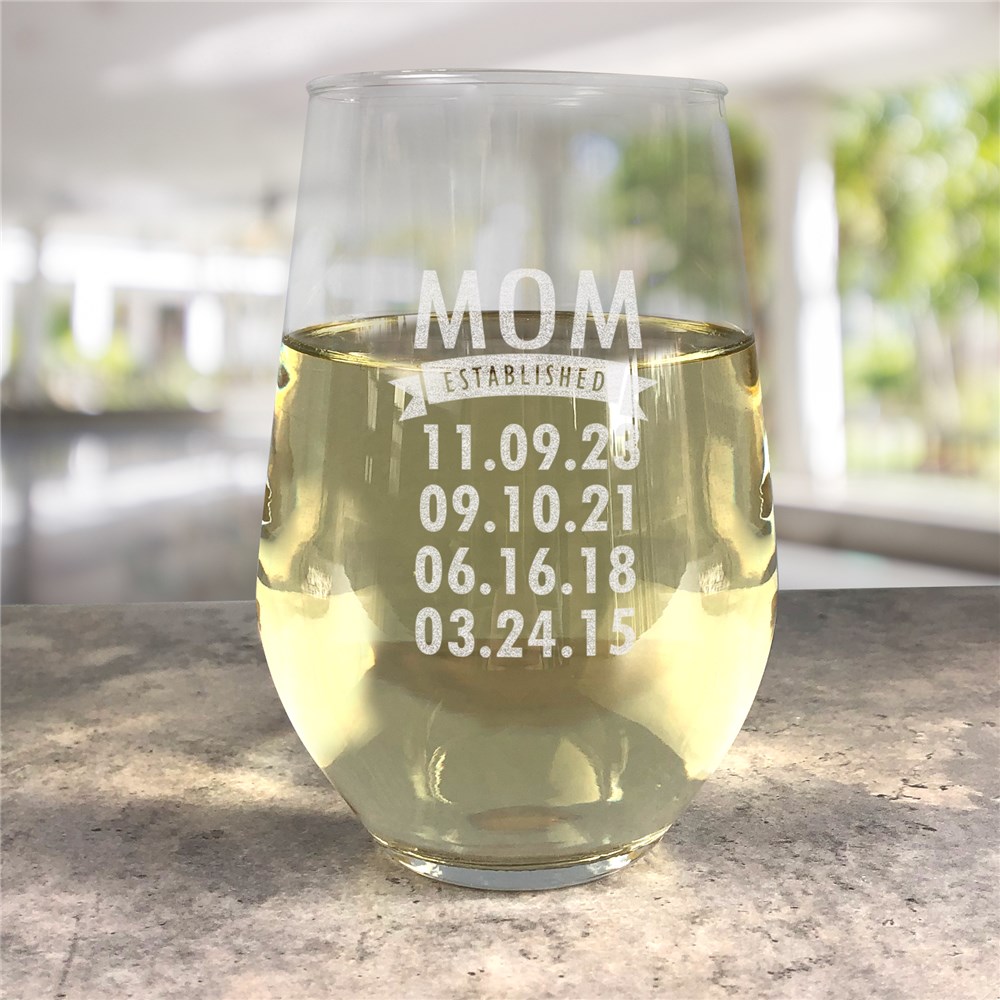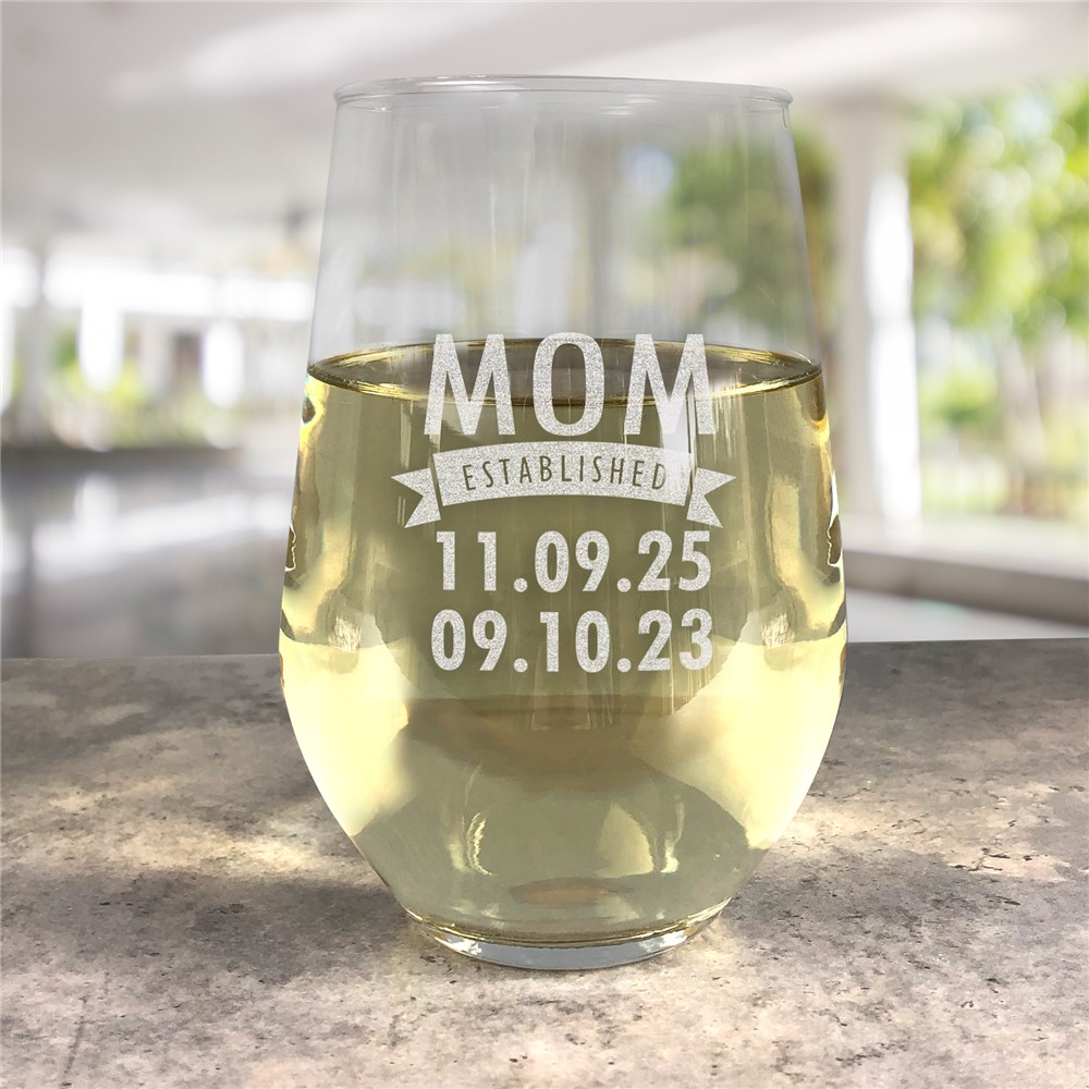 Engraved Mom Established Contemporary Stemless Wine GlassEngraved Mom Established Contemporary Stemless Wine Glass