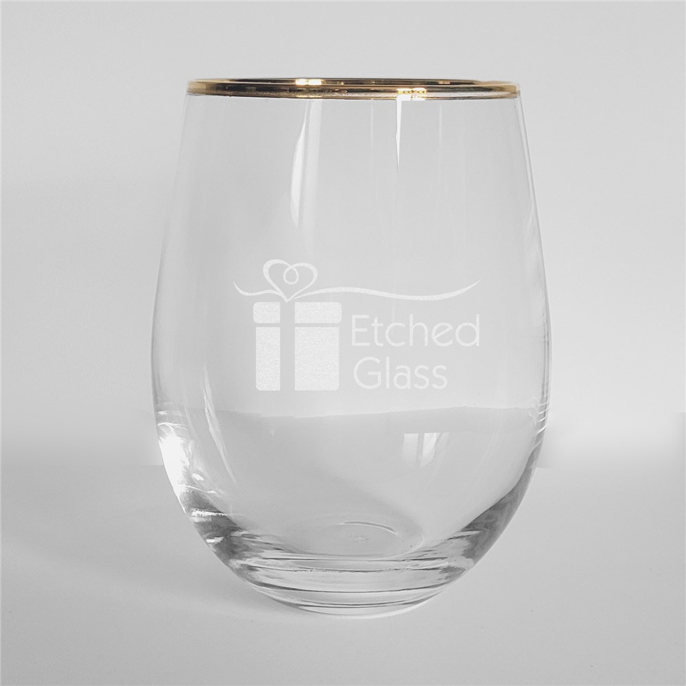 • **Video below is to convey overall look of gold rim stemless wine glass; design and personalization will vary**