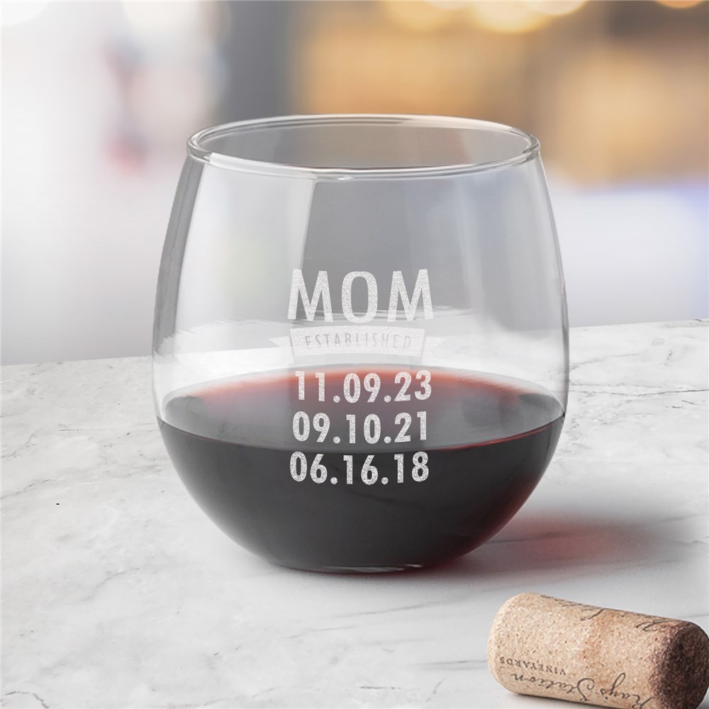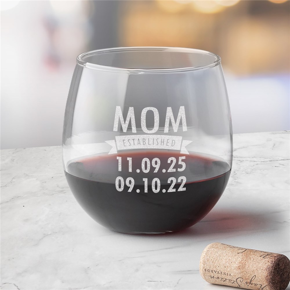 Engraved Mom Established Stemless Red Wine GlassEngraved Mom Established Stemless Red Wine Glass
