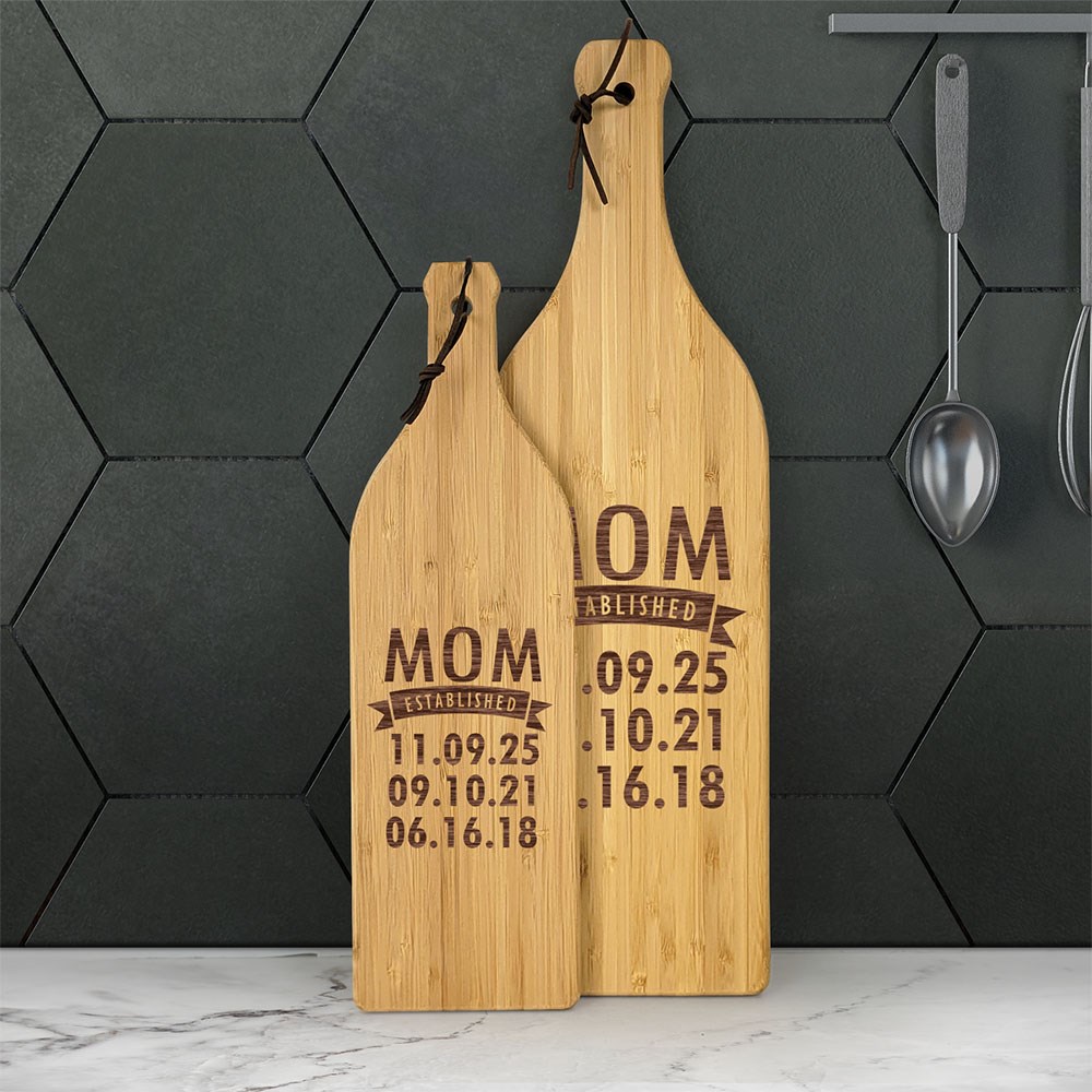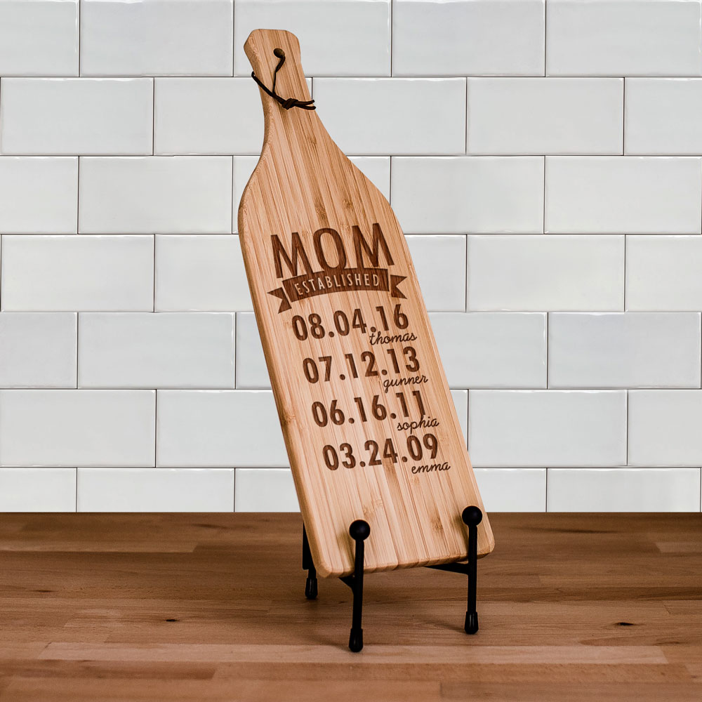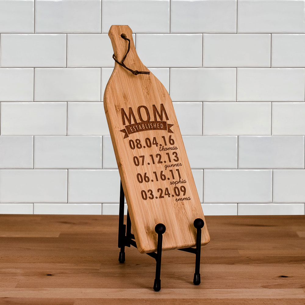When grandma or mom has her wine club over, they'll enjoy eating cheese and spreads off this bamboo cutting board engraved with all of her children or grandchildren.