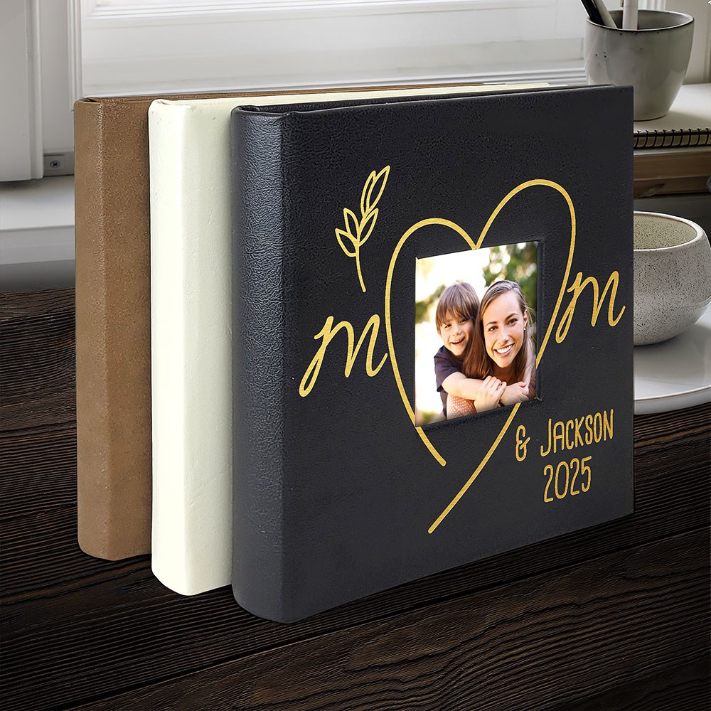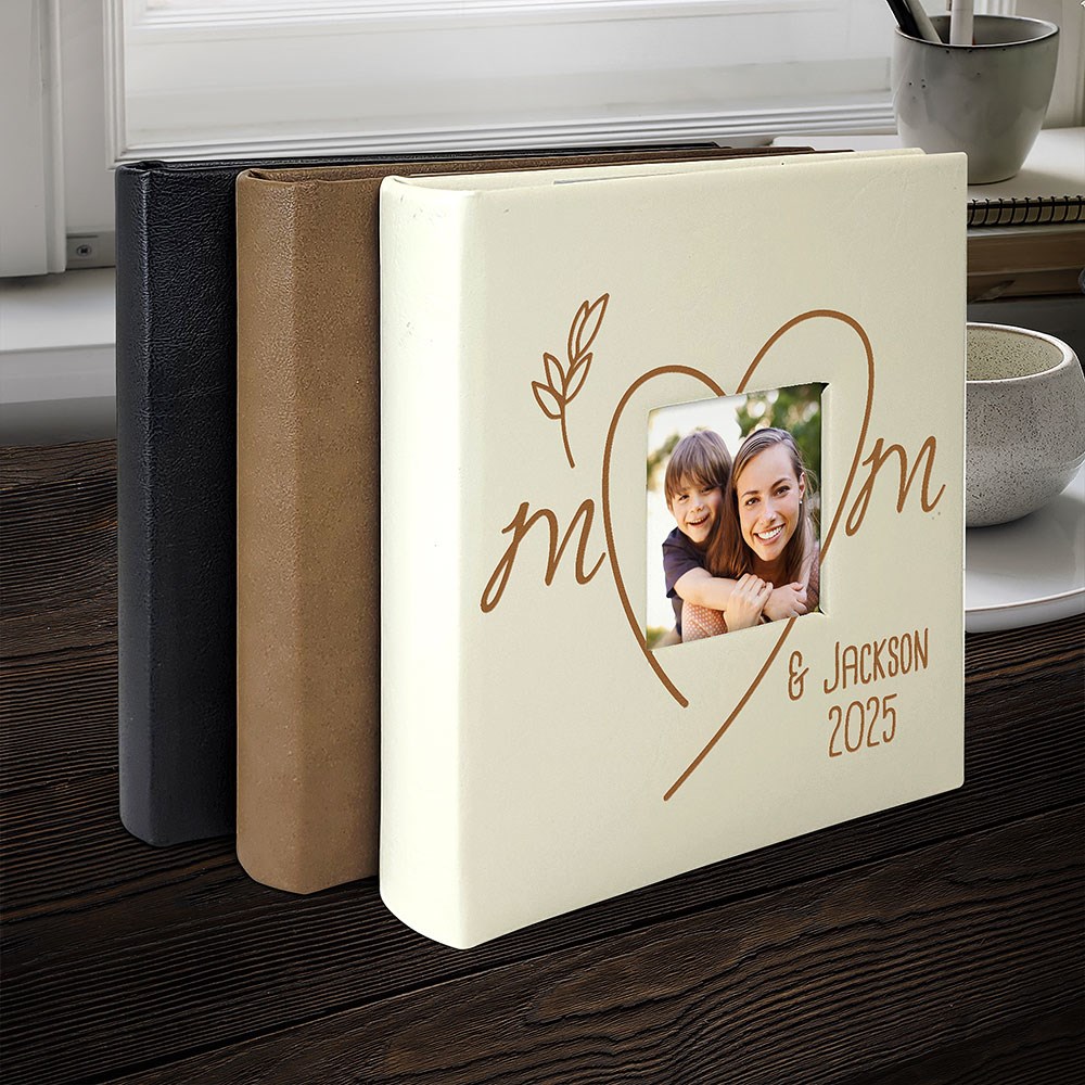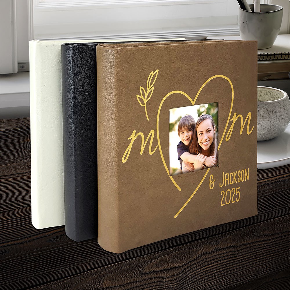 Cherish every smile, laugh, and milestone with this thoughtful and timeless Engraved Mom Heart Leatherette Photo Album, because there's nothing in the world like a mother’s love.