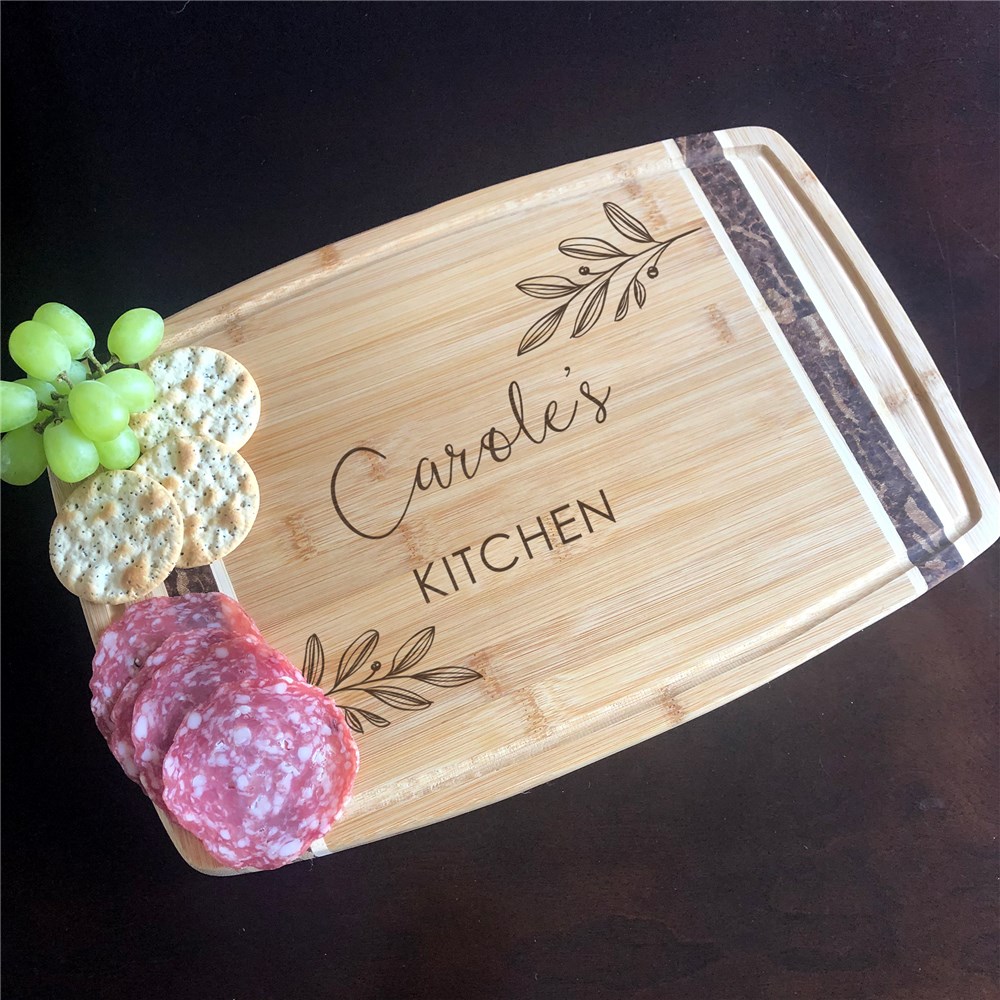 Anyone who spends a lot of time in the kitchen will appreciate this Engraved Mom's Kitchen Marbled Cutting Board.