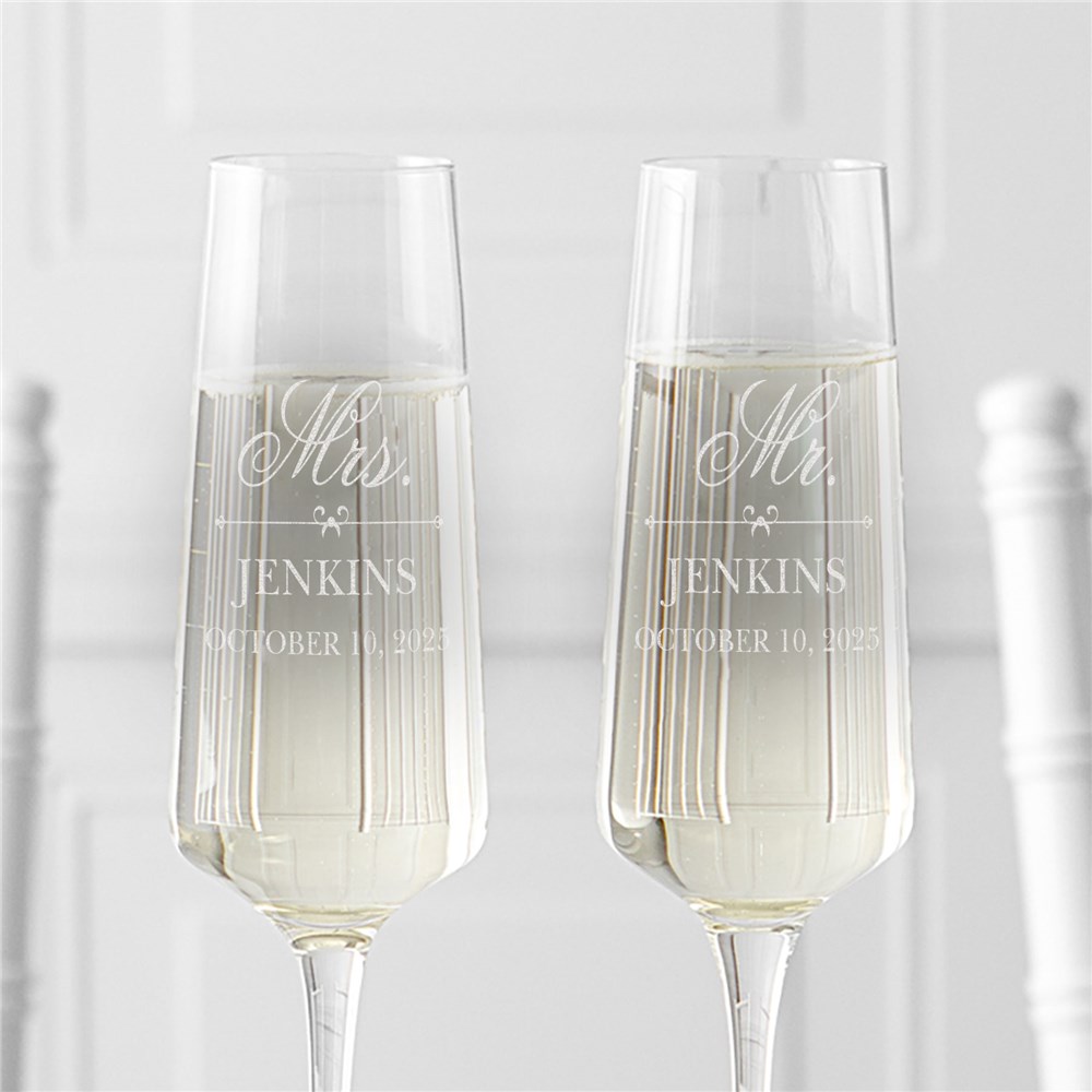 Engraved Mr. and Mrs. Champagne Estate Glasses Set