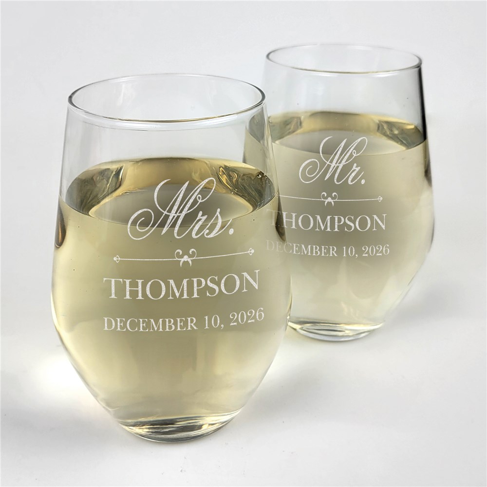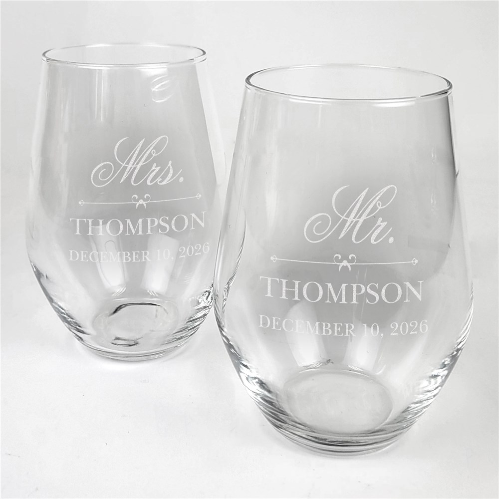 Engraved Mr. And Mrs. Contemporary Stemless Wine Glass Set L12675342-S2Engraved Mr. And Mrs. Contemporary Stemless Wine Glass Set L12675342-S2Engraved Mr. And Mrs. Contemporary Stemless Wine Glass Set L12675342-S2