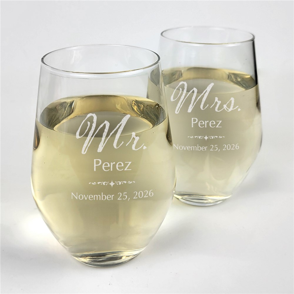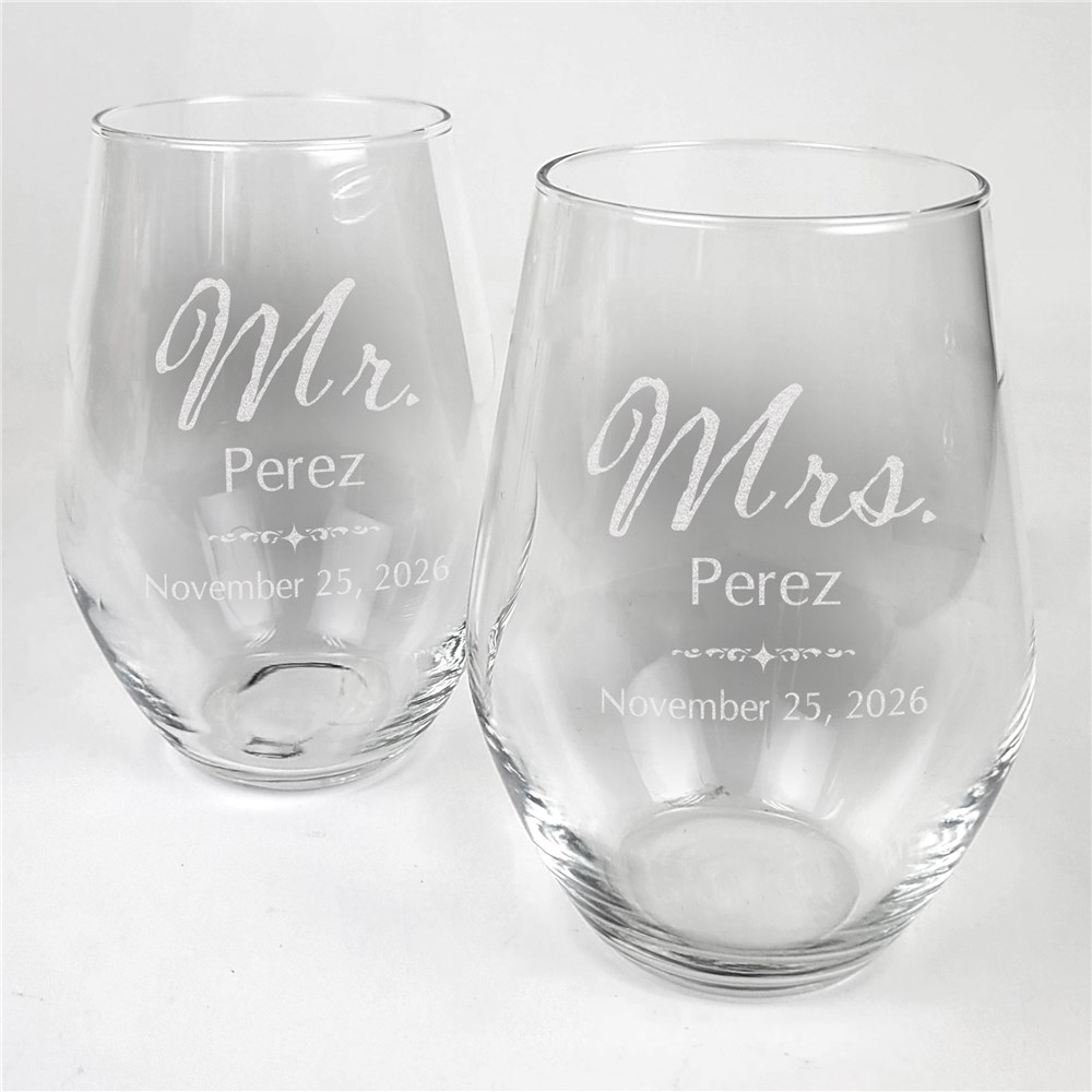 Engraved Mr And Mrs Contemporary Stemless WIne Glass Set L2734342-S2Engraved Mr And Mrs Contemporary Stemless WIne Glass Set L2734342-S2Engraved Mr And Mrs Contemporary Stemless WIne Glass Set L2734342-S2