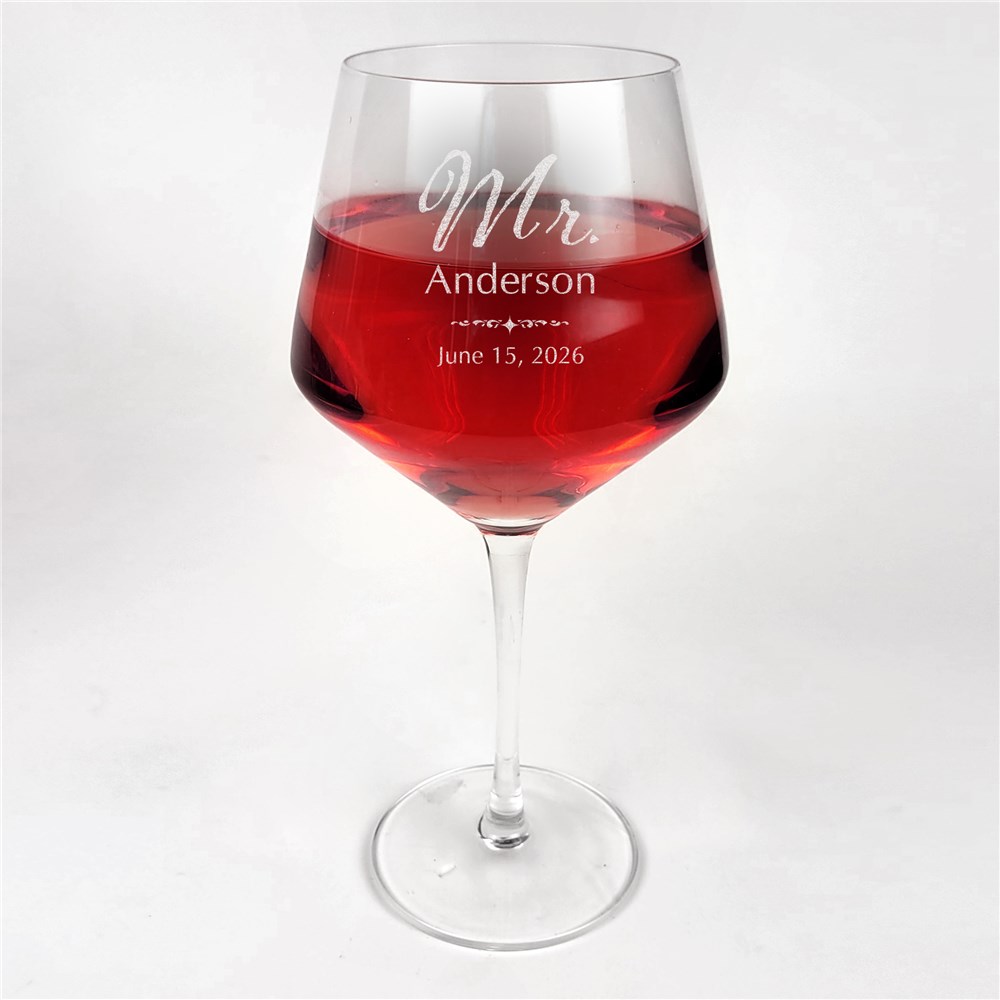 Engraved Mr. And Mrs. Wedding Red Wine Estate Glass Set