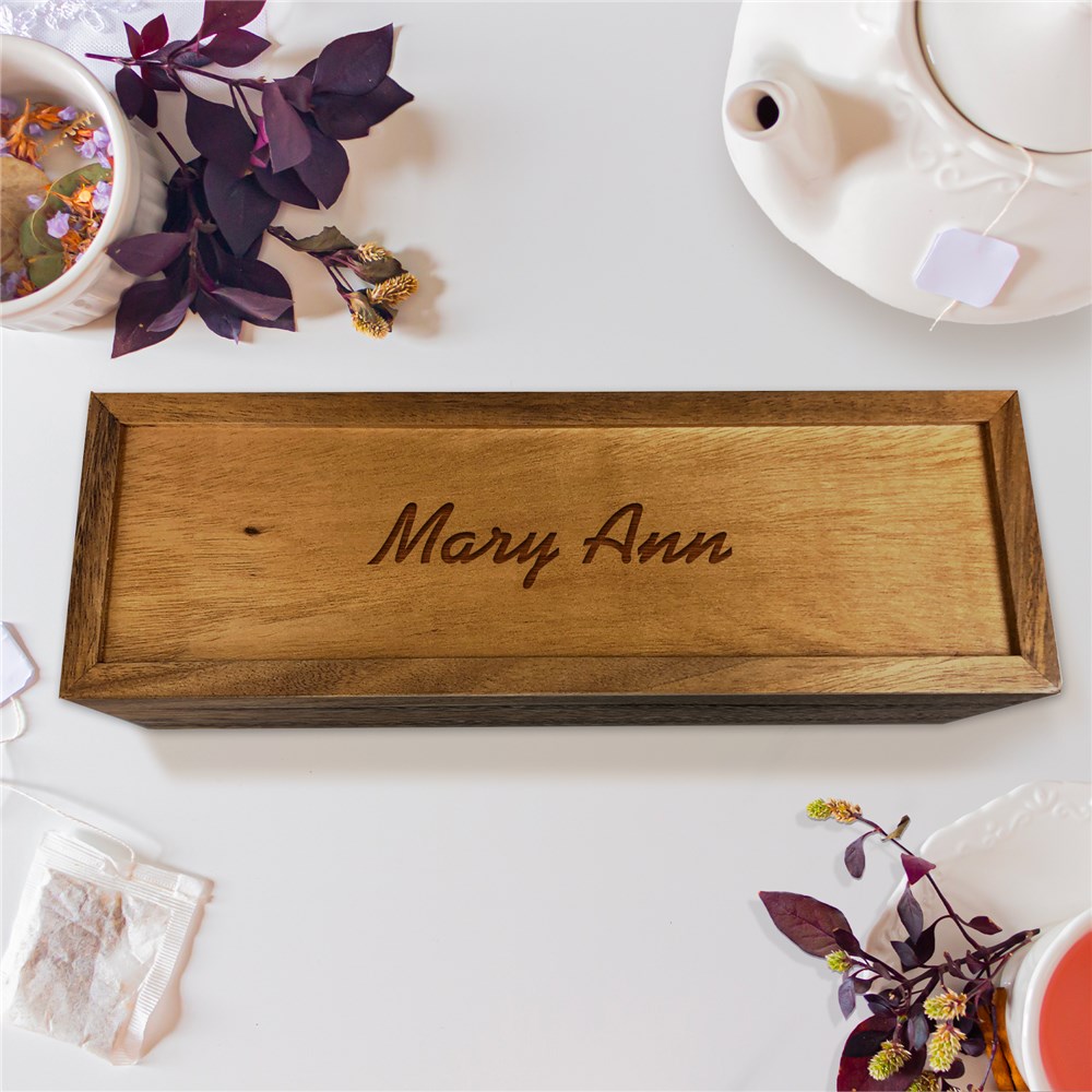 Engraved Name Acacia Tea Box