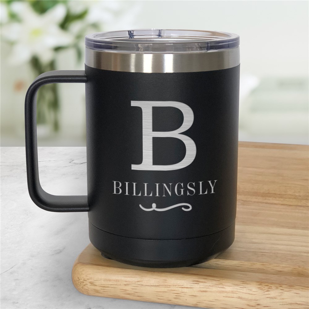 Engraved Insulated Mug with Handle Featuring Name & InitialEngraved Insulated Mug with Handle Featuring Name & InitialEngraved Insulated Mug with Handle Featuring Name & Initial
